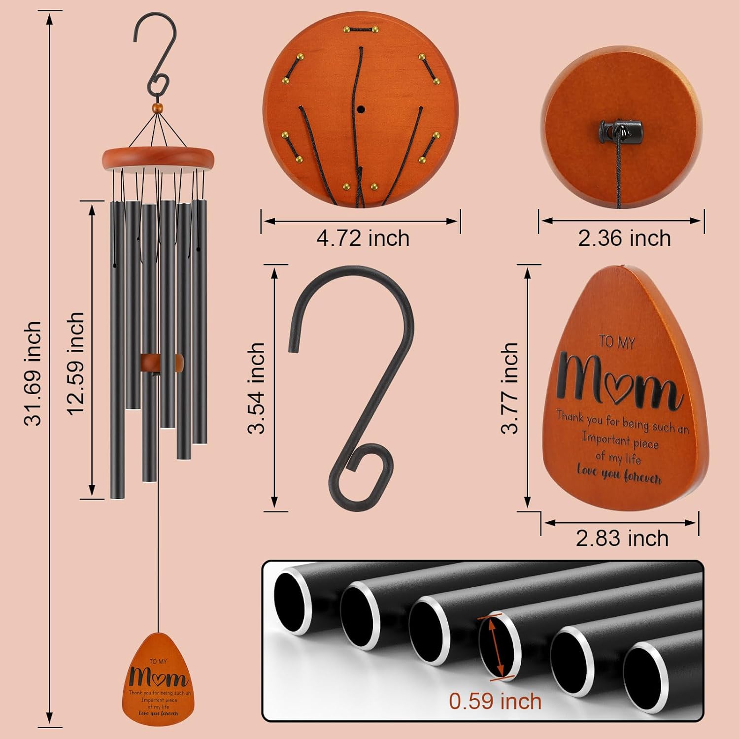 - Soothing Sounds for Relaxation: With its precise design and six thick-walled aluminum tubes, this wind chime gift produces soothing melodies, creating a serene atmosphere that promotes relaxation and tranquility. It's a perfect way to express your love and strengthen your bond with your mom.