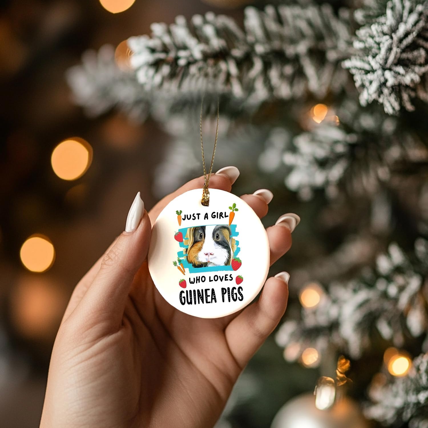 Guinea Pig Ornament, Guinea Pig Ornaments for Christmas Tree, Guinea Pig Gifts for Lovers Women, Just a Girl Who Loves Guinea Pigs Ceramic Ornaments, Guinea Pig Decorative Hanging Ornament