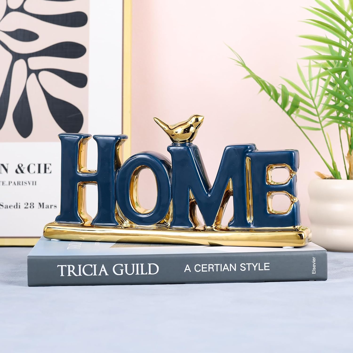 Love Sign Decoration,Blue and Gold Home Signs for Home Decor Statue,Modern Bird Sculpture Personalized Love Decor,Gold Style Figurine Decorative Ornaments for Living Room,Bedroom,Desktop