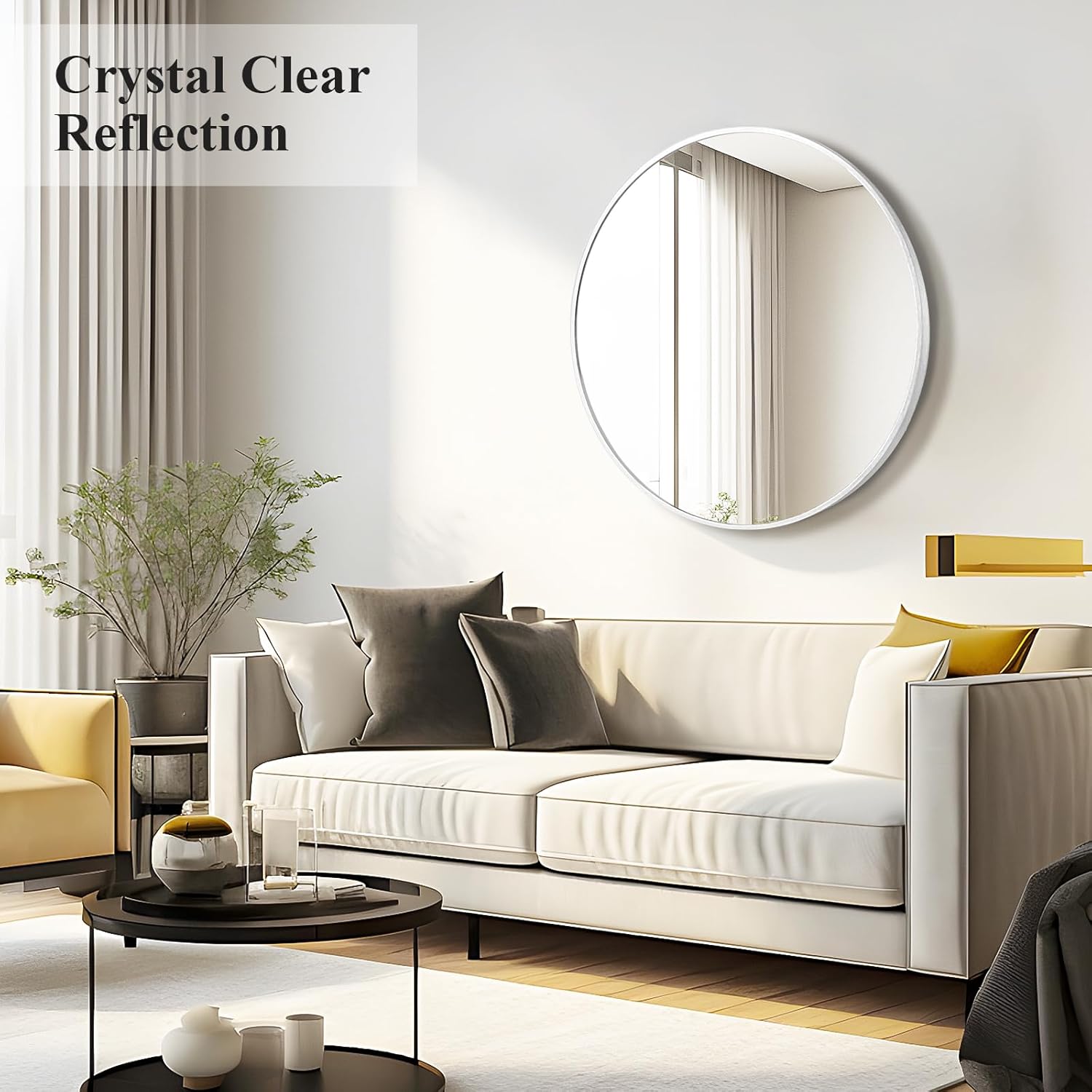 Fabuday Silver Round Mirror 28 Inch - Big Circle Mirror for Bathroom, Living Room, Hallway, Entryway, Matte Aluminum Frame Circular Mirrors for Wall Decor
