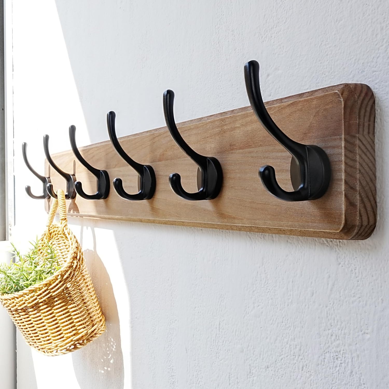 - 【24” LONG & AMPLE HANGING SPACE:】 Boasting a 24” long wood board with 6 dual hooks, this wall coat hanger offers plenty of hanging space.