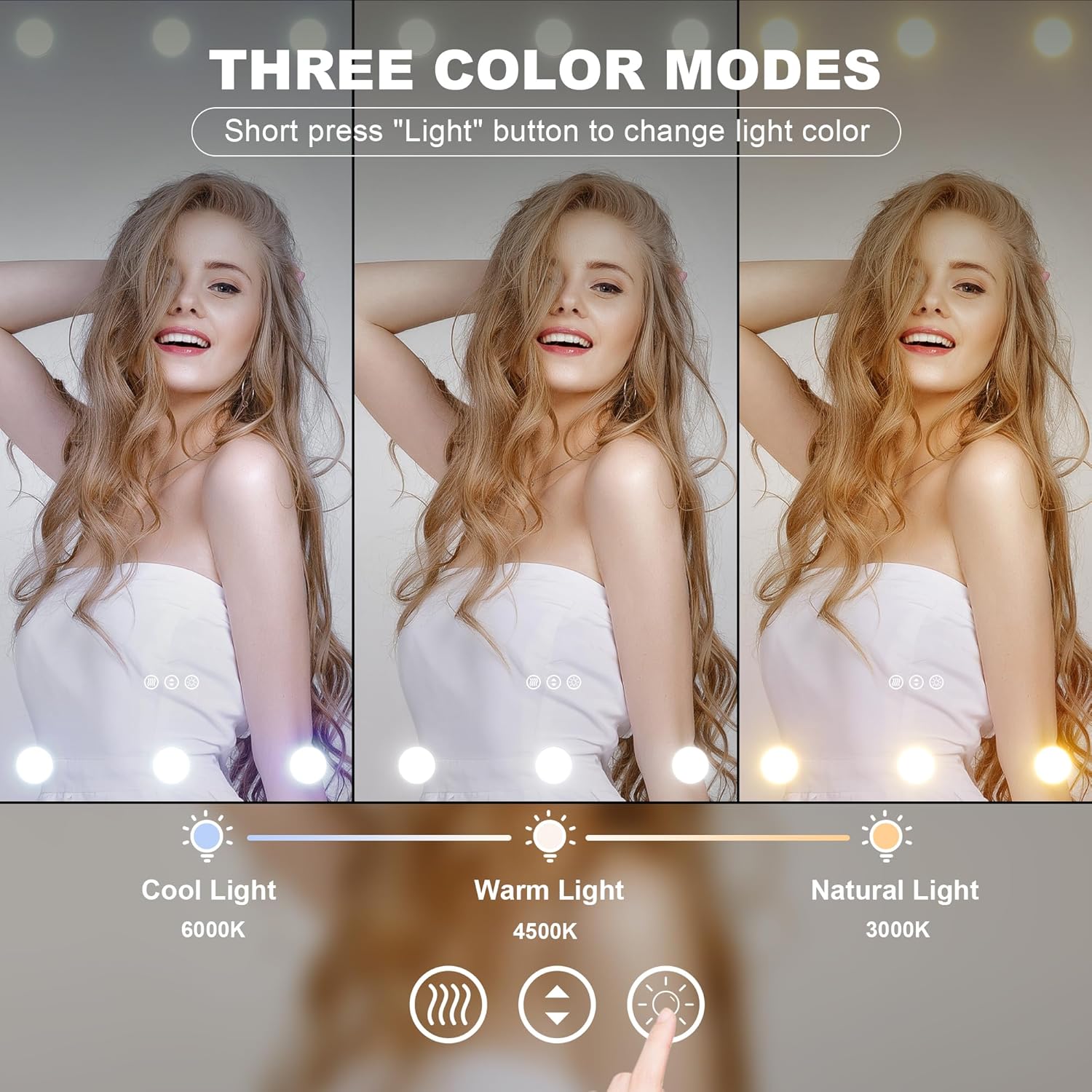 - 【Upgraded Anti-Fog & Smart Touch Screen】 Our bathroom mirror features an enhanced anti-fog function with a large heating film for faster fog removal, ensuring a clear reflection after your shower. The smart touch screen allows easy control of lights, color modes, and brightness, offering a sleek and convenient experience.