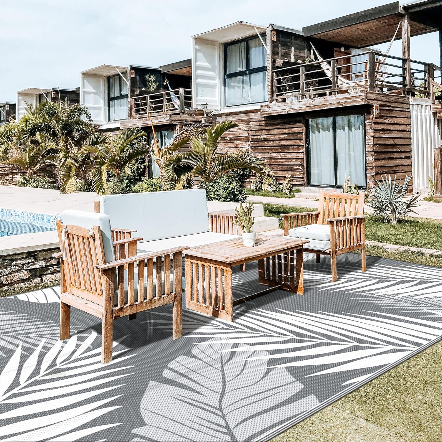 - Palm Leaf Design & Double-Sided Pattern: GENIMO reversible fall outdoor rug is designed with a double-sided pattern, completing the unique layout of multiple palm leaves. The 2 shades of grey and white achieve the ultimate fusion. Either side can blend perfectly with nature and look very full and comfortable, making it a versatile piece for fall decor