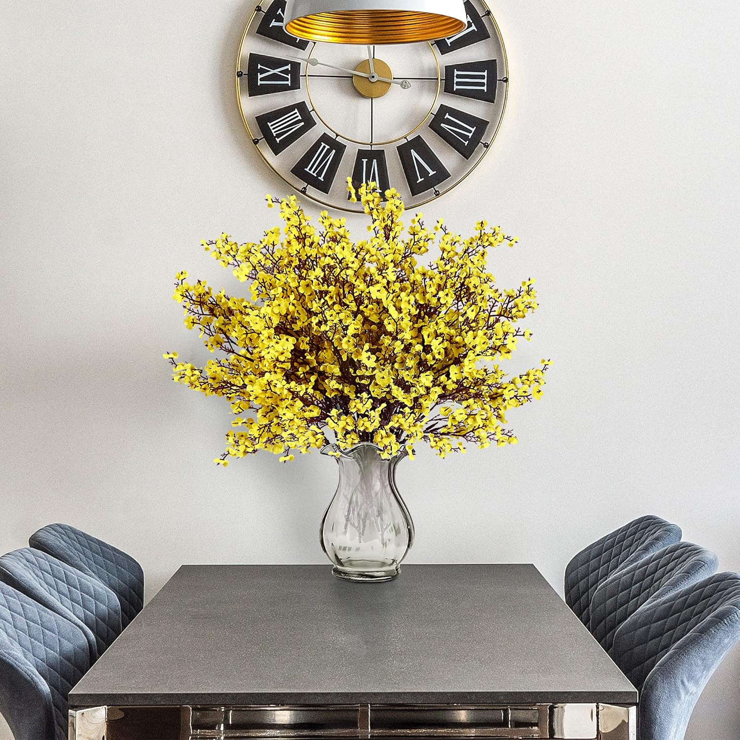 Sggvecsy 6 Pcs Babys Breath Artificial Flowers Gypsophila Bouquets Bulk Real Touch Fake Silk Flowers for Home Wedding DIY Floral Arrangement Kitchen Table Centerpiece Festival Decoration (Yellow)