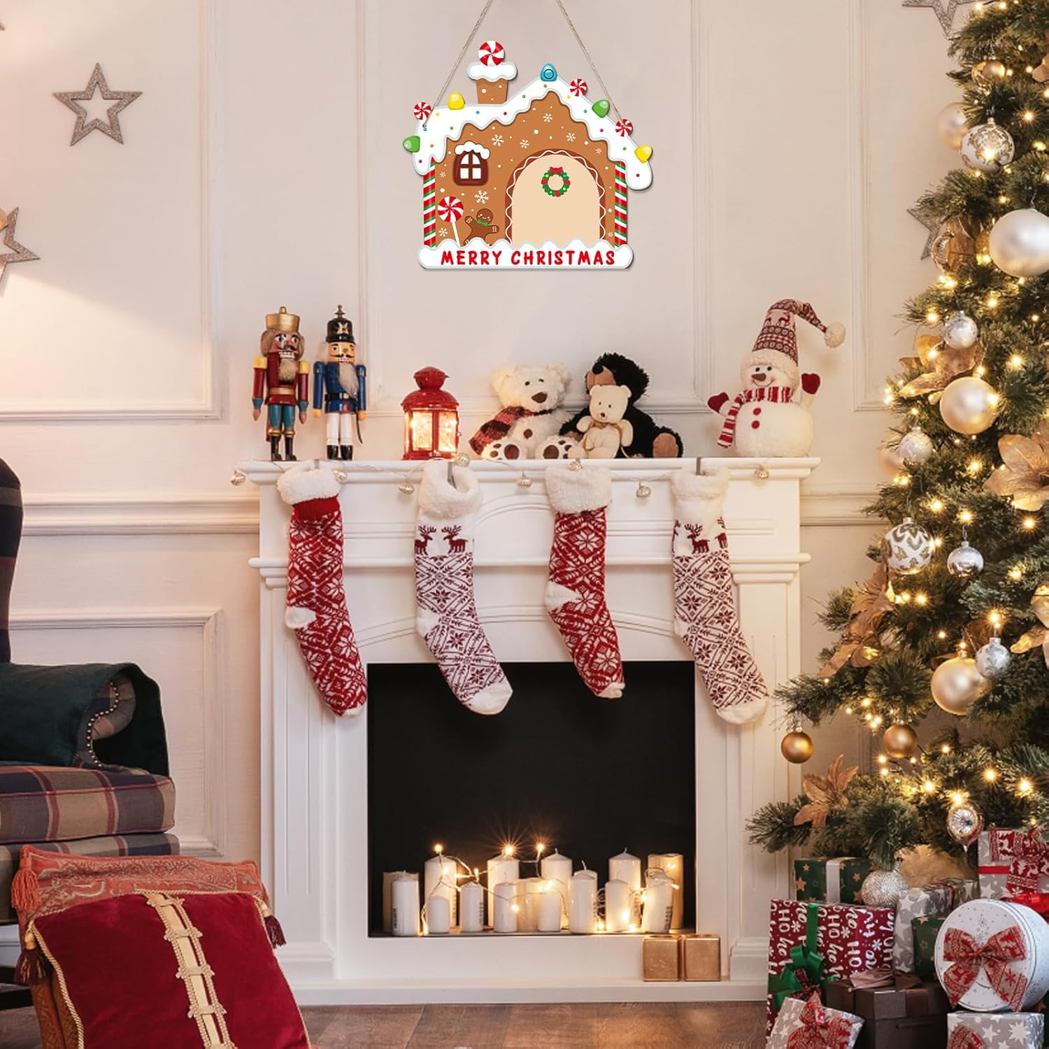 - Unique Merry Christmas Shape wood slices for ornaments: These blank Christmas ornaments for painting are cut out to classic Christmas gingerbread house patterns, large size for you to use on DIY craft project, and write words “Merry Christmas”, make your home full of festive atmosphere.