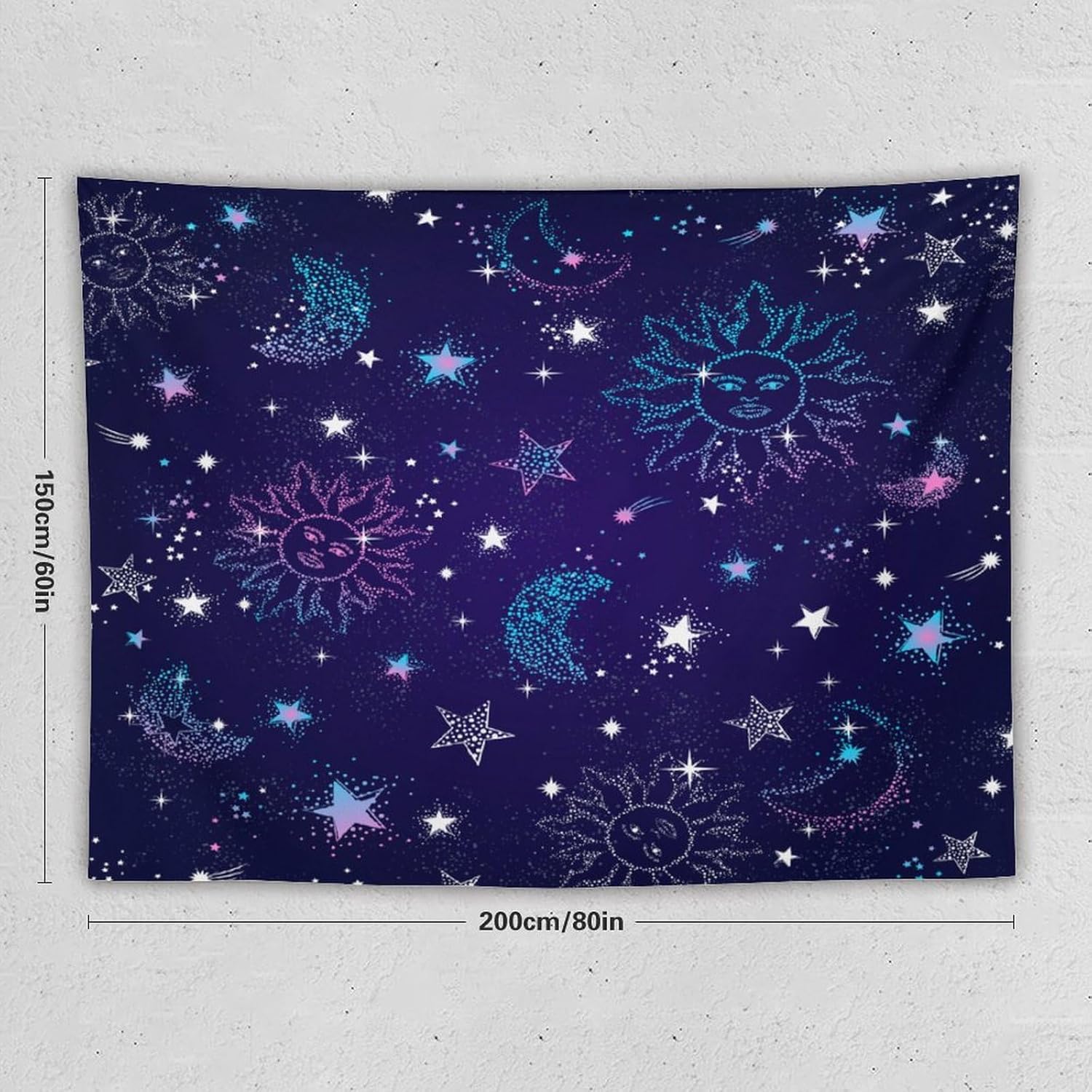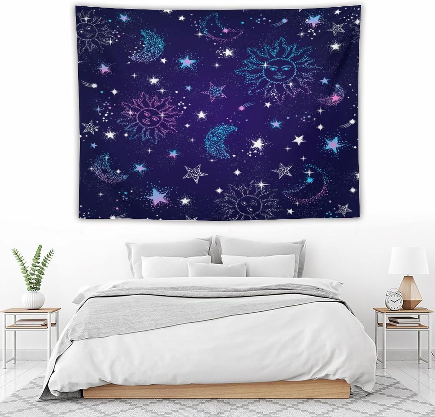 HZOHNAGO Boho Sun Moon Tapestry Purple Blue Sun Stars Galaxy Pattern Printed Wall Tapestry Wall Hanging for Bedroom Living Room Dorm 80" W x 60" H