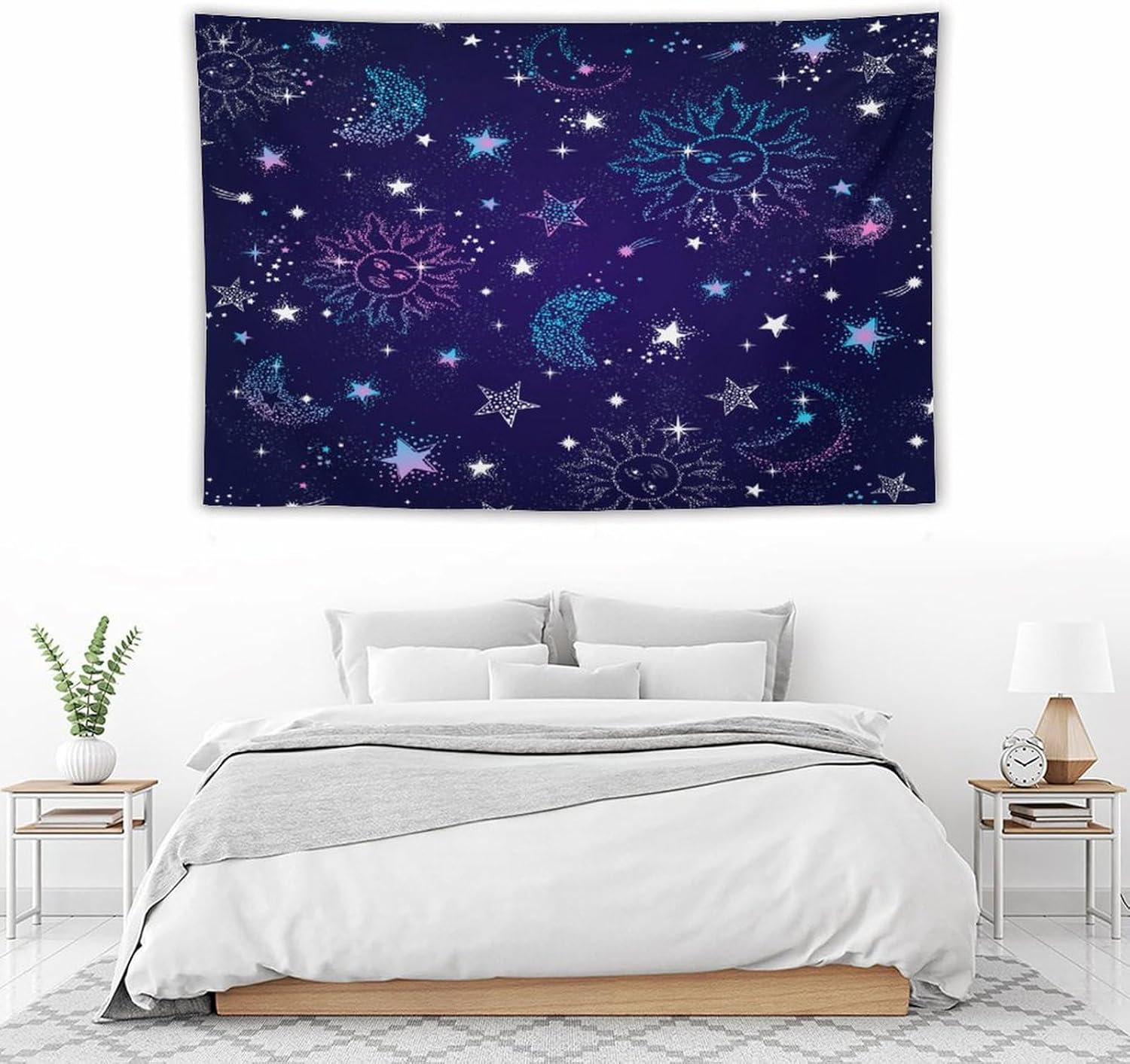 HZOHNAGO Boho Sun Moon Tapestry Purple Blue Sun Stars Galaxy Pattern Printed Wall Tapestry Wall Hanging for Bedroom Living Room Dorm 90" W x 60" H