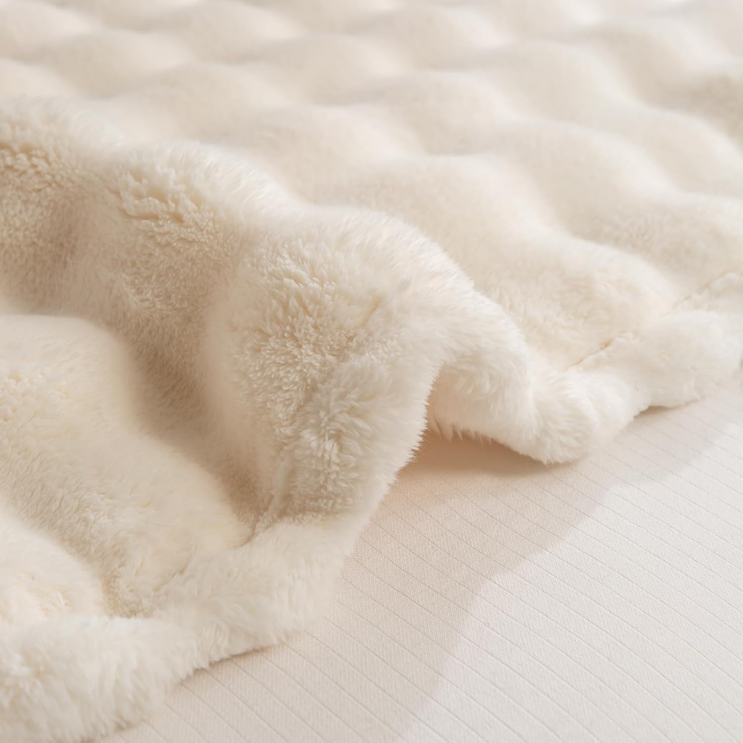 YUSOKI Luxury 3D Bubble Throw Blanket 5lb,All Ages,Home Decoration, (Ivory,90 * 90inches)