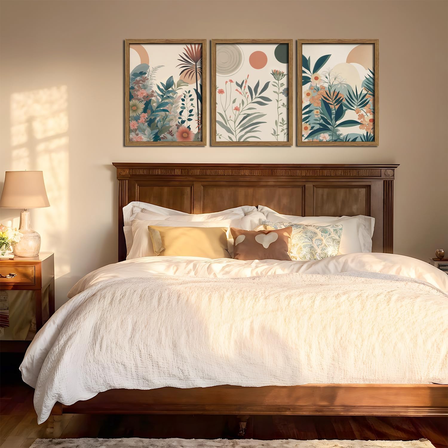 - Plant Wall Art: Whether you're decorating a modern bedroom or creating a cozy corner with bohemian decor, this plant wall art set complements a wide range of interior styles.The 3 piece wall art set accentuate the abstract floral designs. Ideal for those who love boho pictures or modern tropical aesthetics or rustic decor, the canvas wall art fits seamlessly into styles.