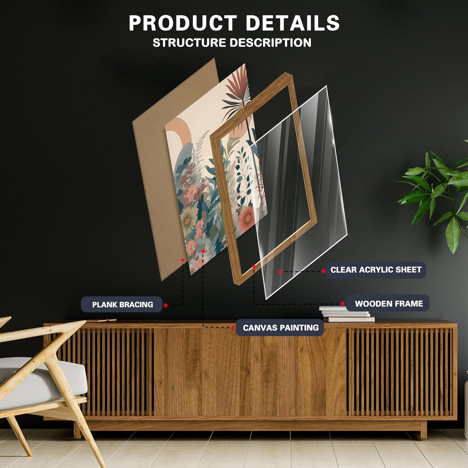 - Wood Frame and Easy to Hang Crafted with a durable wood frame, this canvas wall art set offers a polished and premium look. The framed canvas wall art equipped with hardware for easy hanging, making it the perfect choice for updating your walls effortlessly.