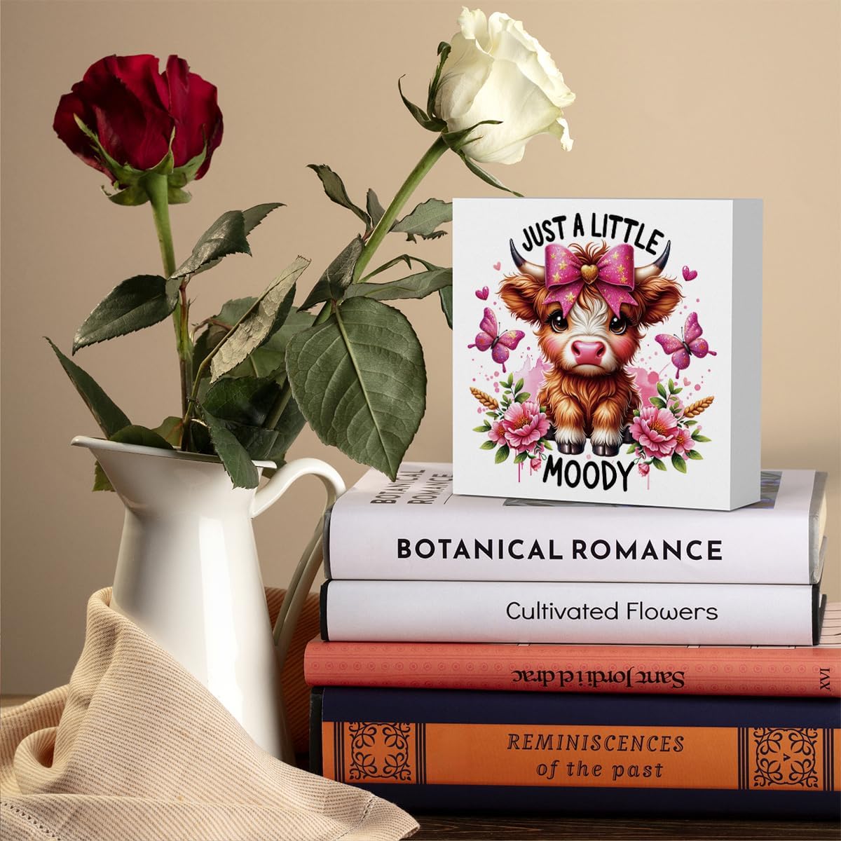 Cute Highland Cow Baby Decor, Cow With Pink Bow, Highland Cow Gifts for women, Highland Cow Decor, Highland Cow Nursery Decor, Wooden Box Decor Sign for Home Farmhouse Office Living Room Table Shelf