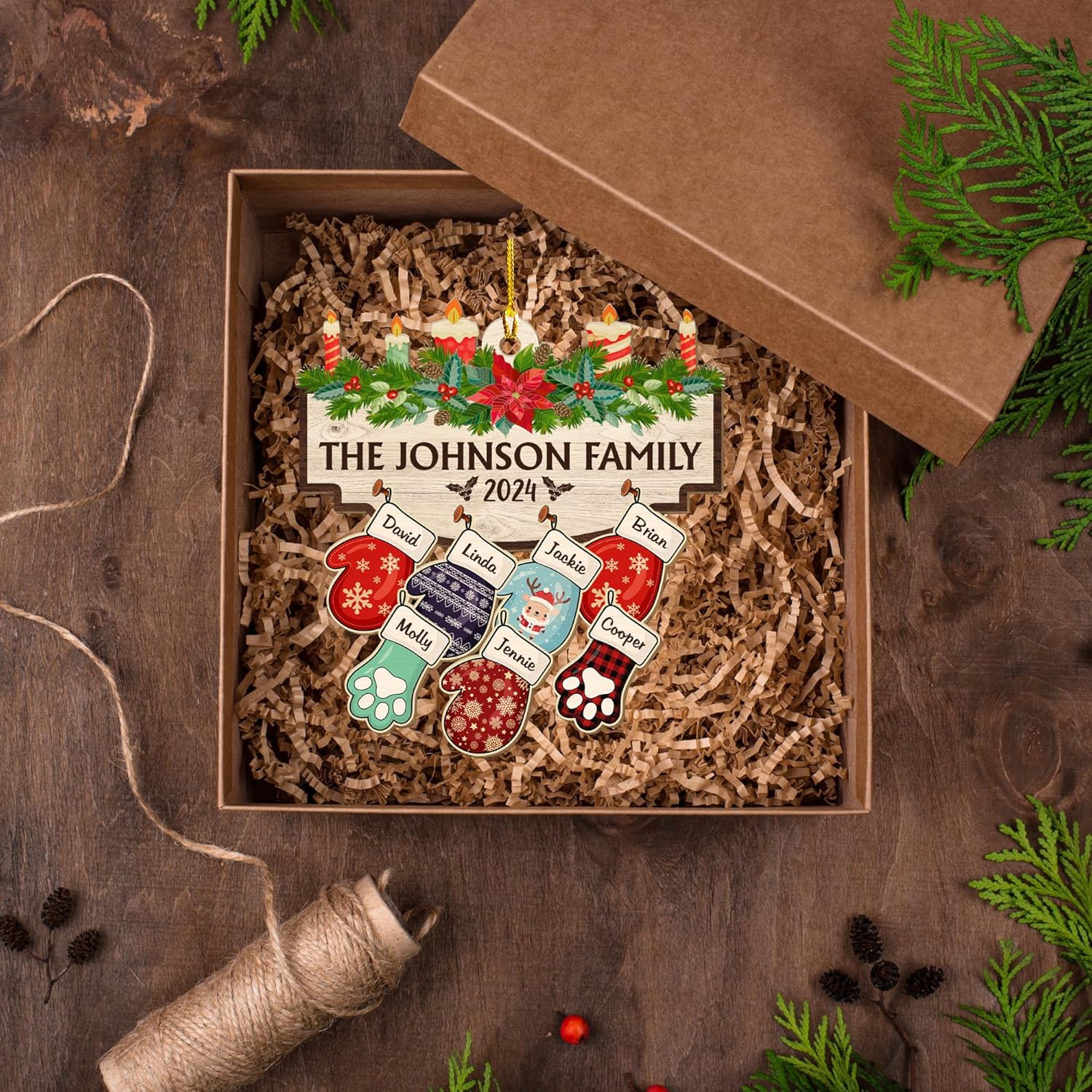 - 🐾 Perfect for Families with Pets - This ornament is designed to include everyone in the family, even furry friends! Choose gloves for each family member and stockings for pets, each with a custom name. It’s the perfect keepsake to represent the whole family in festive style.