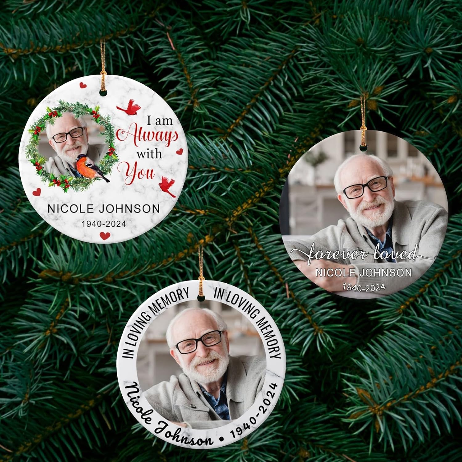 Personalized Memorial Christmas Ornaments 2025 w/Photo & Name, Custom Memorial Gifts for Lost Loved One,Double-Sided Ceramic Customized Xmas Ornaments for Christmas Tree