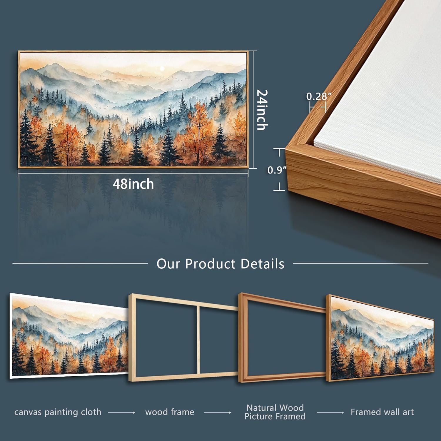- Canvas Framed WALL ART Size: Framed wall art Size Is 24x48 inches (60x120 cm)( Including The Outer Frame) This product is (Wood Framed) With its generous size; wall art provides aesthetic decoration for your room decor