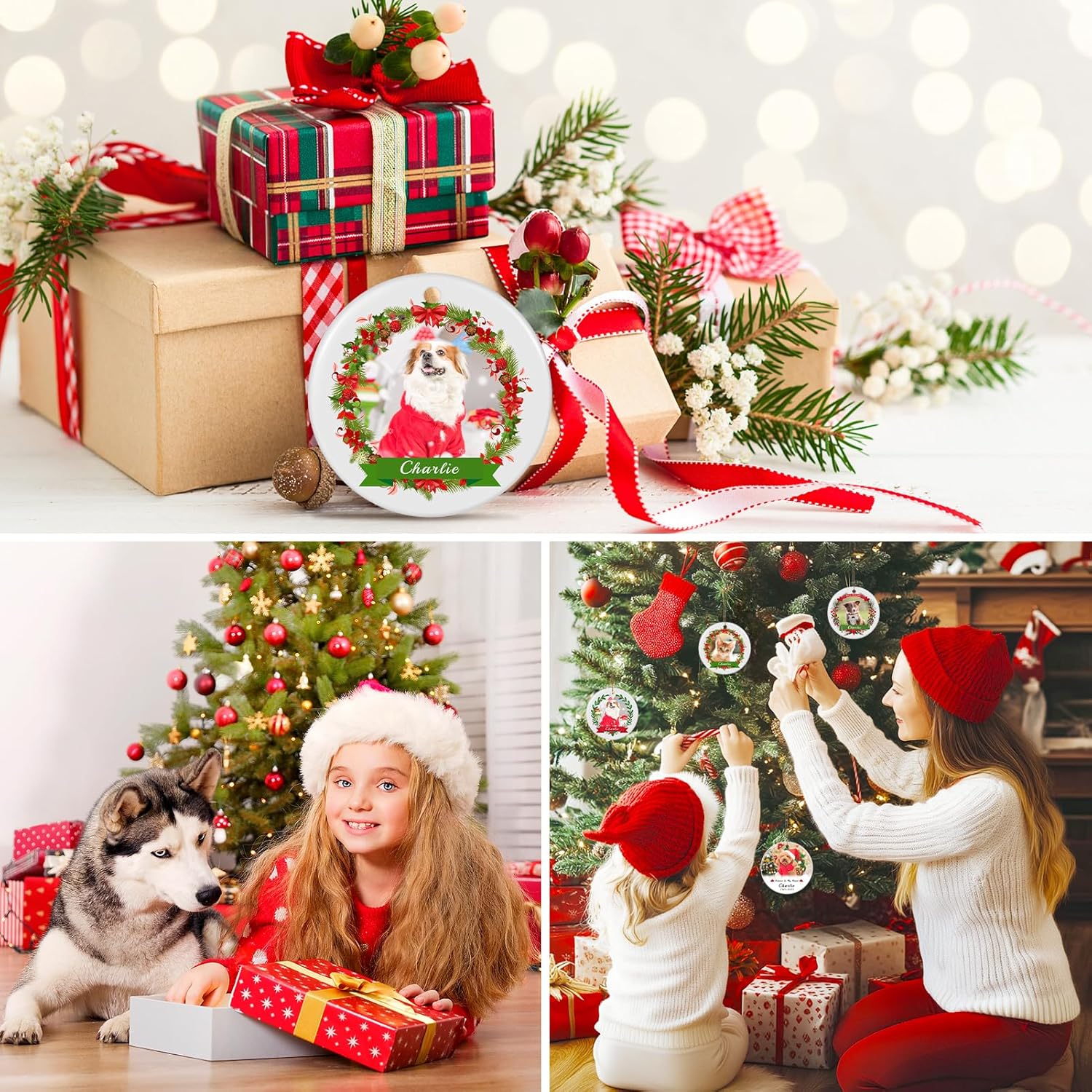 Personalized Dog Photo Christmas Ornament 2025, Ceramic Custom Pet Memorial Ornament Xmas Gifts for Christmas Trees Decorations