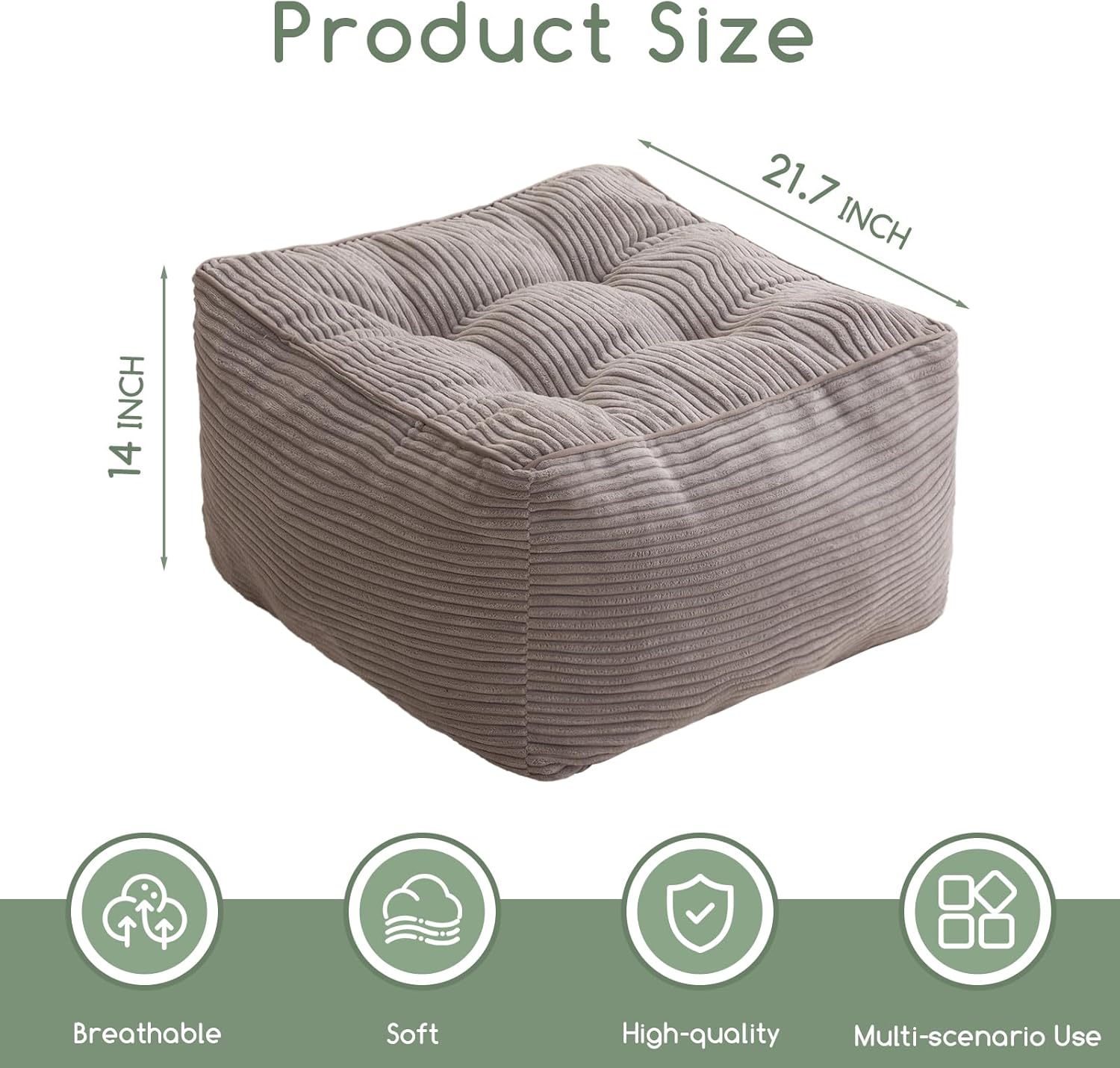 HIGOGOGO Square Stuffed Pouf Ottoman, Corduroy Poufs with Foam Chunk Filling, Furry and Fluffy Pouf Foot Stool Storage Ottoman, 21 X 21 Floor Poufs Foot Rest for Living Room, Grey