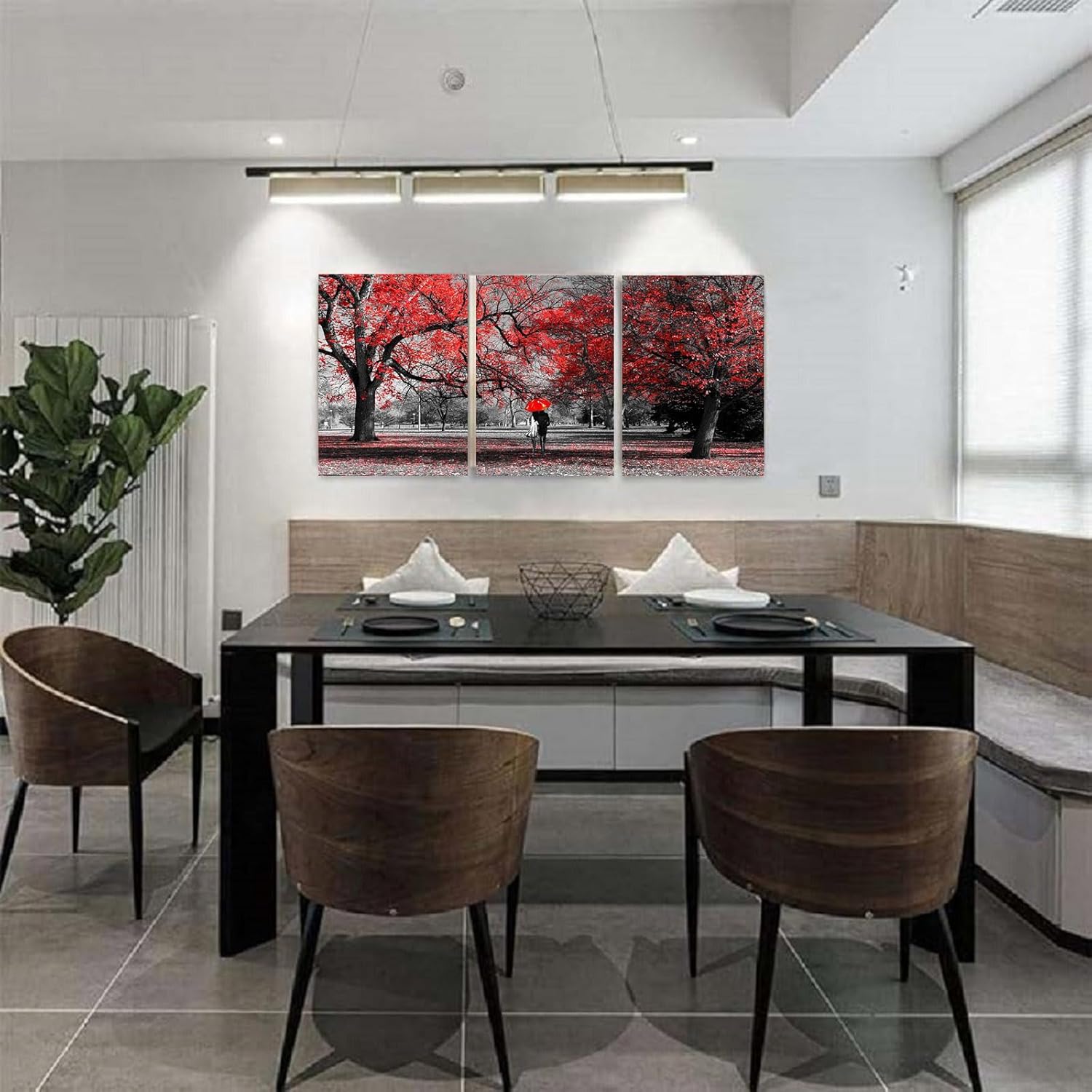 - 🍁🍂Black White Red Canvas Wall Art Suitable places: paintings for wall decorations living room, bedroom, kitchen, bathroom, dinning room, home, office. Due to the different brand of monitor setting the printing colors may appear slightly different from the image color.