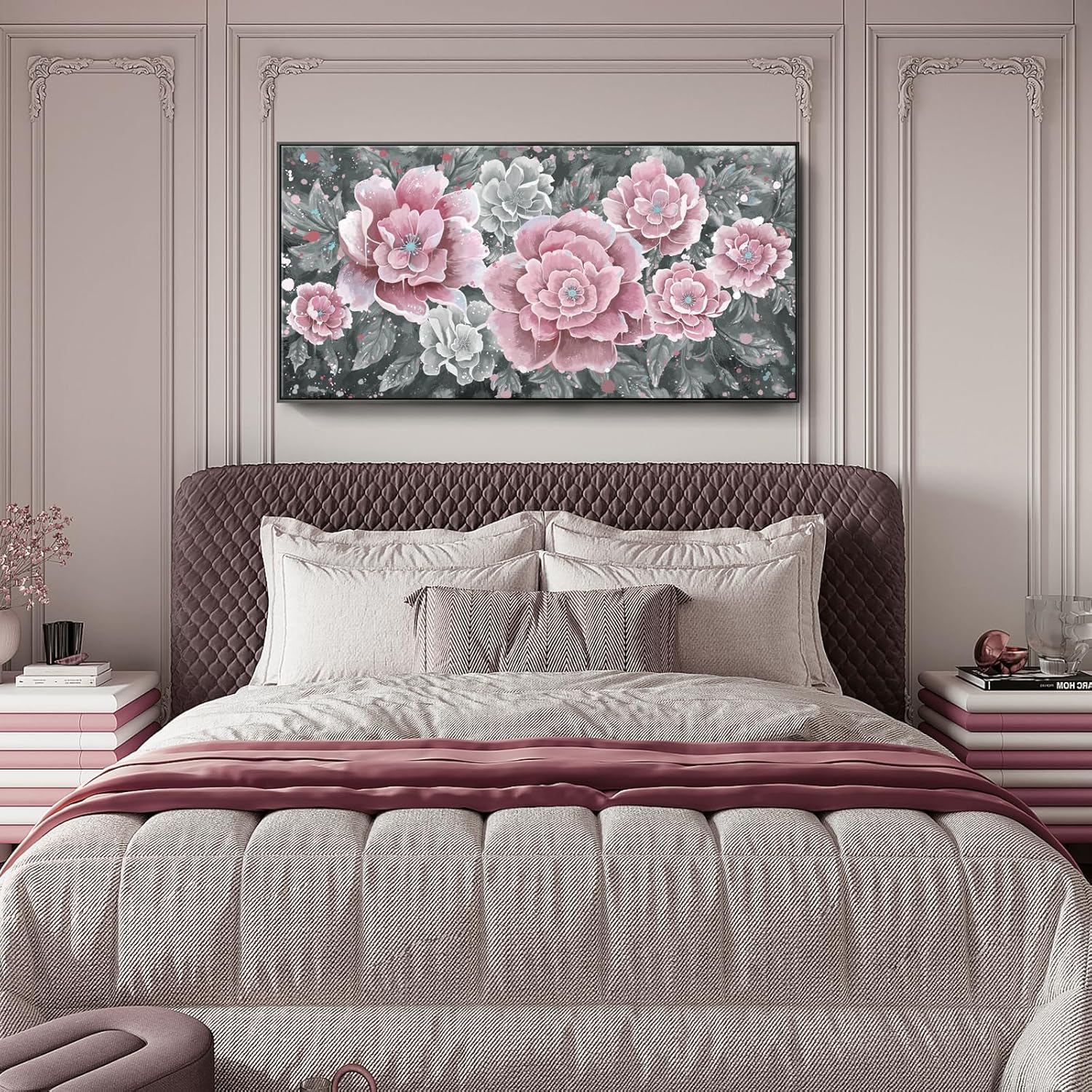 Oversized Framed Wall Art, Pink Flower Canvas Print Modern Pink & Grey Peony Blossom Artwork Extra Large Wall Picture Floral Decor for Living Room Bedroom Dining Room Office Home Decor