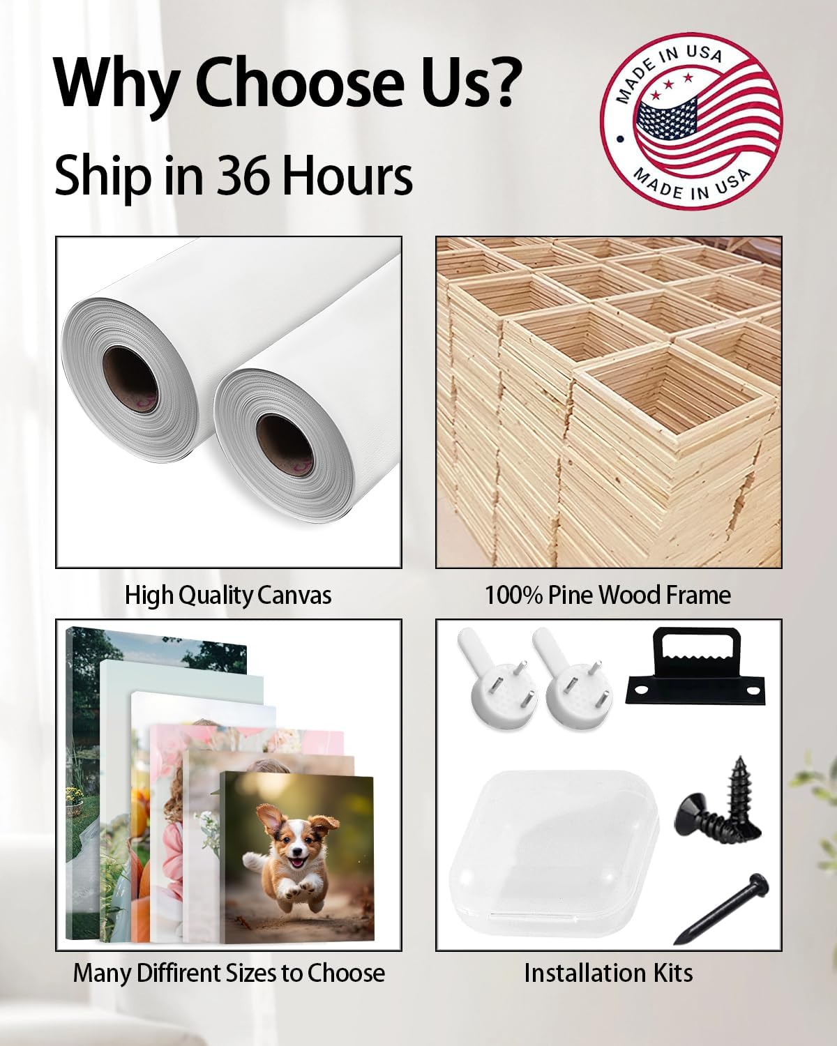 • 🚚【Premium Quality, Made in the USA】: All our canvas prints are proudly crafted in the USA. Enjoy fast processing and delivery, ensuring your canvas wall art arrives quickly and in perfect condition
