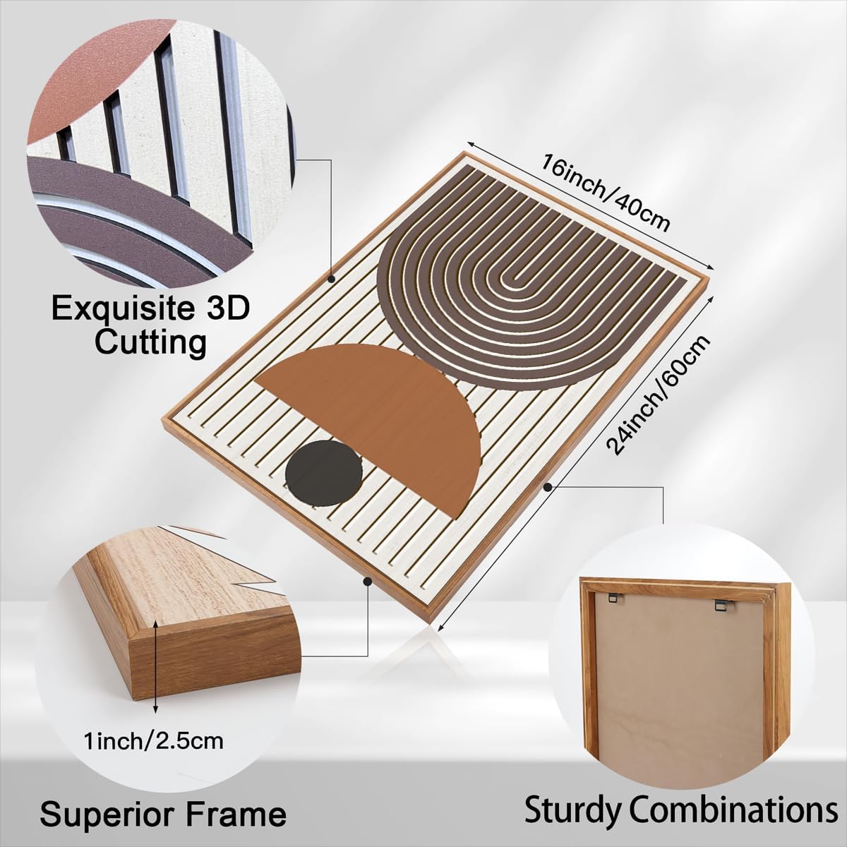 Mid Century Boho Modern Wall Art Set Abstract Geometric Wooden Wall Decor Minimalist Line Neutral Artwork Mid Century Wood Art Decor for Living Room Bedroom Office-16x24Inch x3