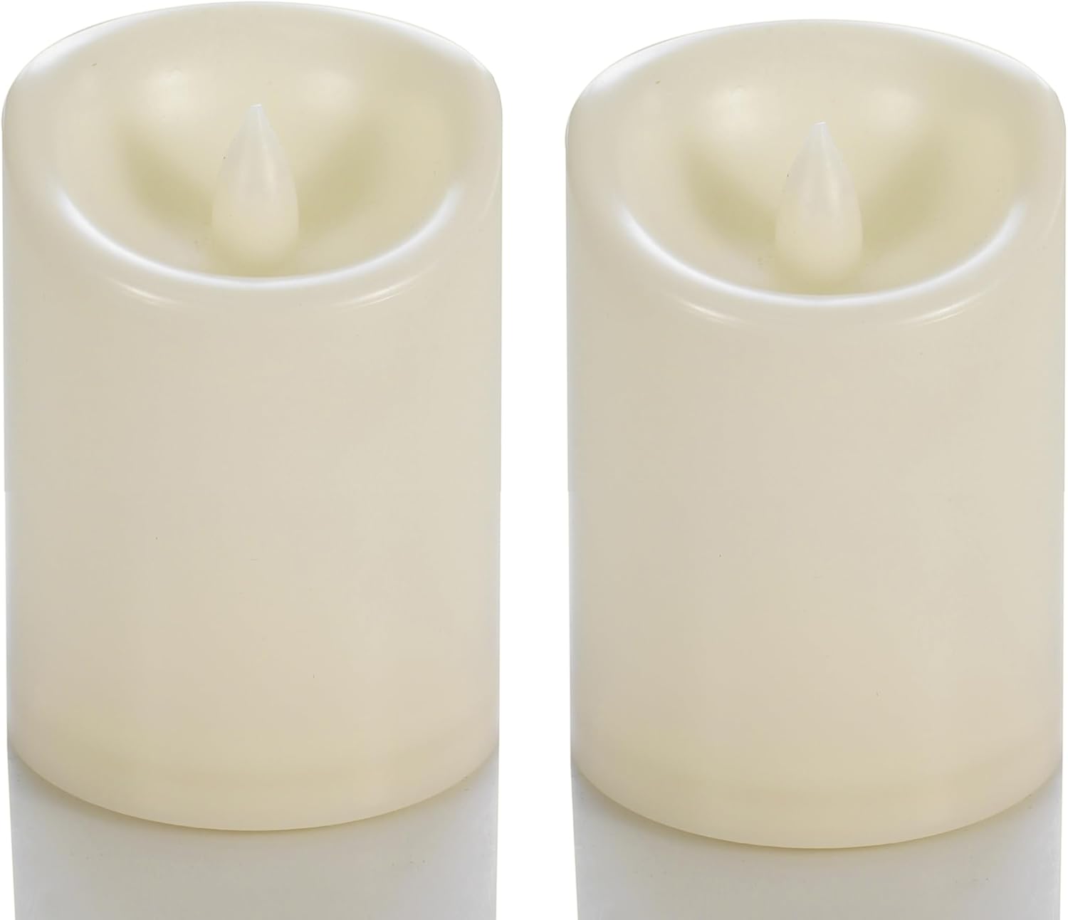 CANDLE CHOICE Waterproof Outdoor Battery Operated Flameless Candles with Timer Flickering Plastic Resin Electric LED Pillar Lights for Lantern Patio Garden Wedding Party Decorations 3x4 Inches 2 Pack