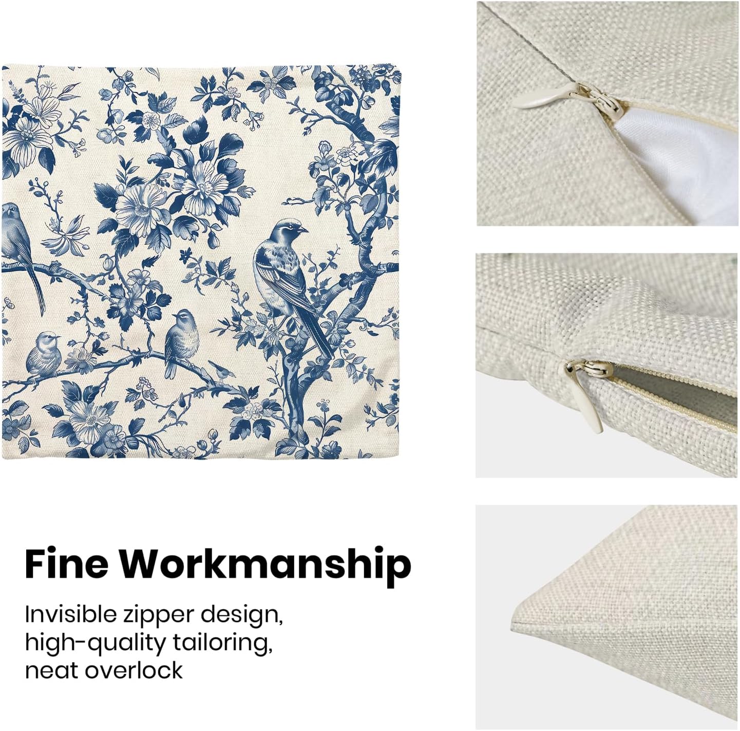 - 【Square Pillow Covers Size】 Chinoiserie flower birds pillow case set includes 2 pcs of farmhouse couch pillow covers (NO Pillow). Home decor farmhouse pillow covers measures 18x18 inch/ 45x45 cm. All the floral decor throw pillow covers have a hidden zipper. It is easy to insert or remove the pillow core to replace the spring pillowcase. Easy to clean and wash, sturdy and not easy to damage.