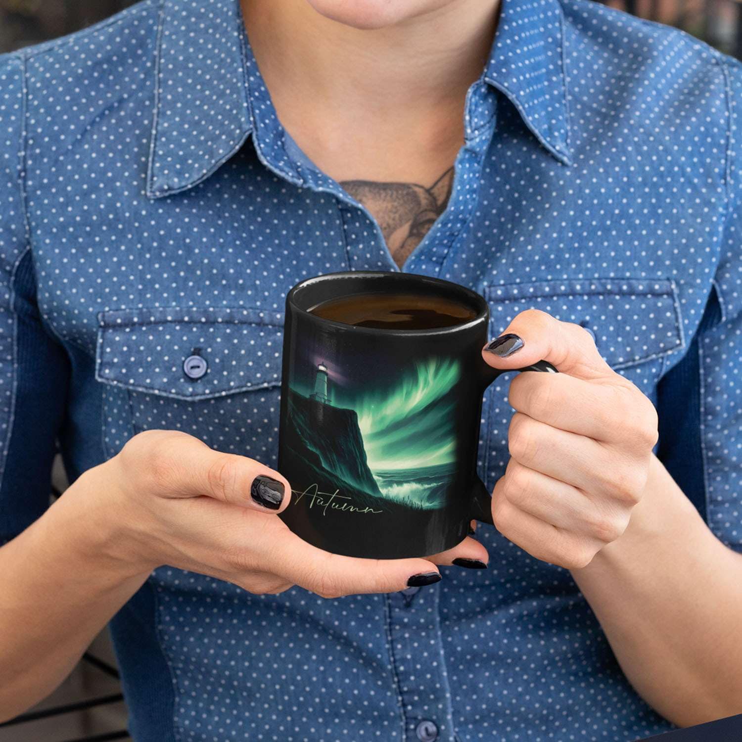- 💝【UNIQUELY PERSONALIZED】Enjoy a serene moment with this Customized Name Black Coffee Mug, featuring a stunning view of the northern lights and a lighthouse set against a mystical ocean backdrop. This personalized ceramic mug gift for nature lovers and adventurers alike. Click "Customize Now" to add a name and create a one-of-a-kind gift for both women and men.