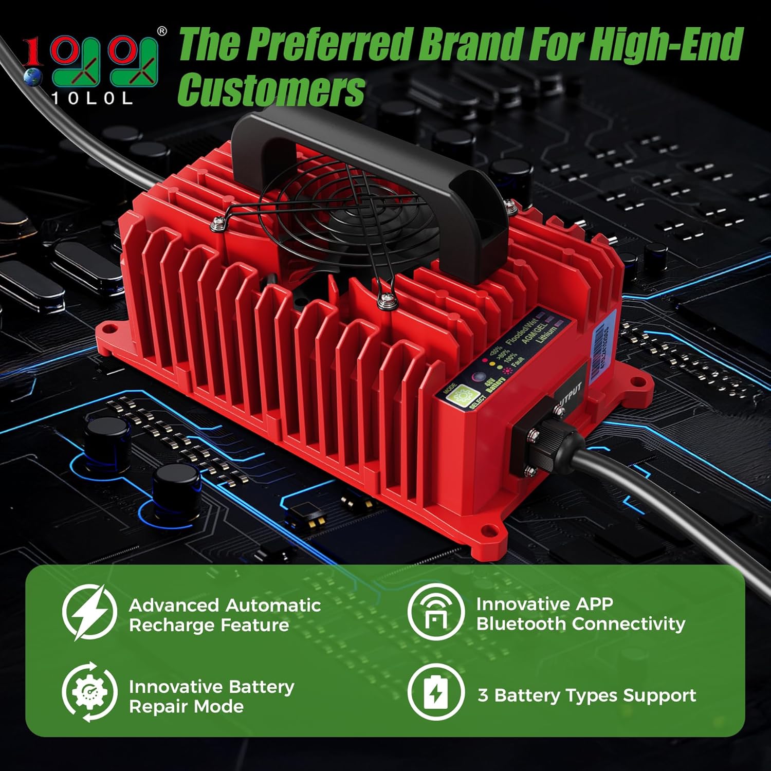 - Multi-functional Battery Compatibility: Our golf cart charger compatibility with three battery types: lead-acid, maintenance-free, and lithium iron phosphate, ensuring seamless compatibility with the battery type in your cart. You do not the need to purchase different chargers. 10L0L charger is your first choice.