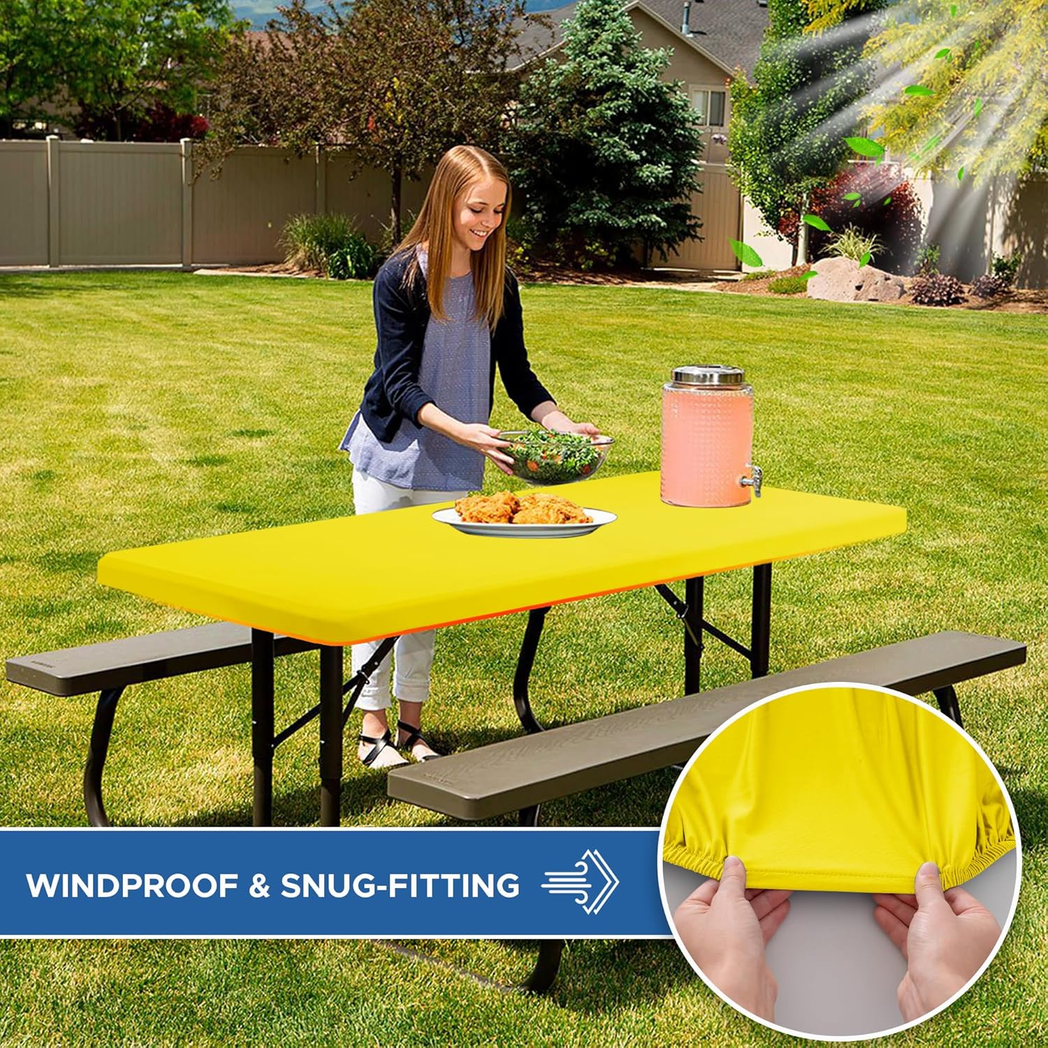 Fitted Tablecloth for 6 Foot Rectangle Tables-6 Pack Yellow Elastic Outdoor Picnic Table Cover-Spandex Stretch Folding Table Cloths 6 ft for Camping Dining Room Patio Kitchen Banquet Party