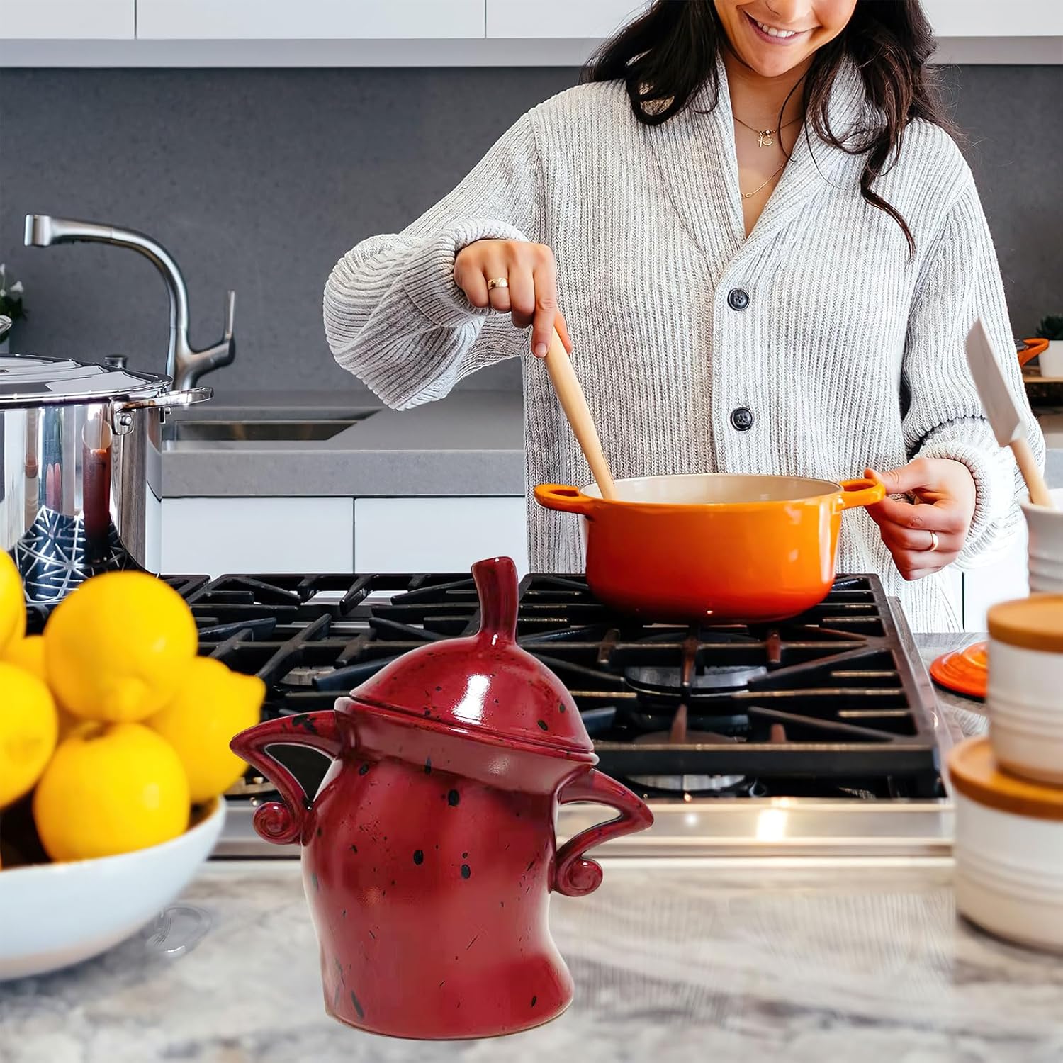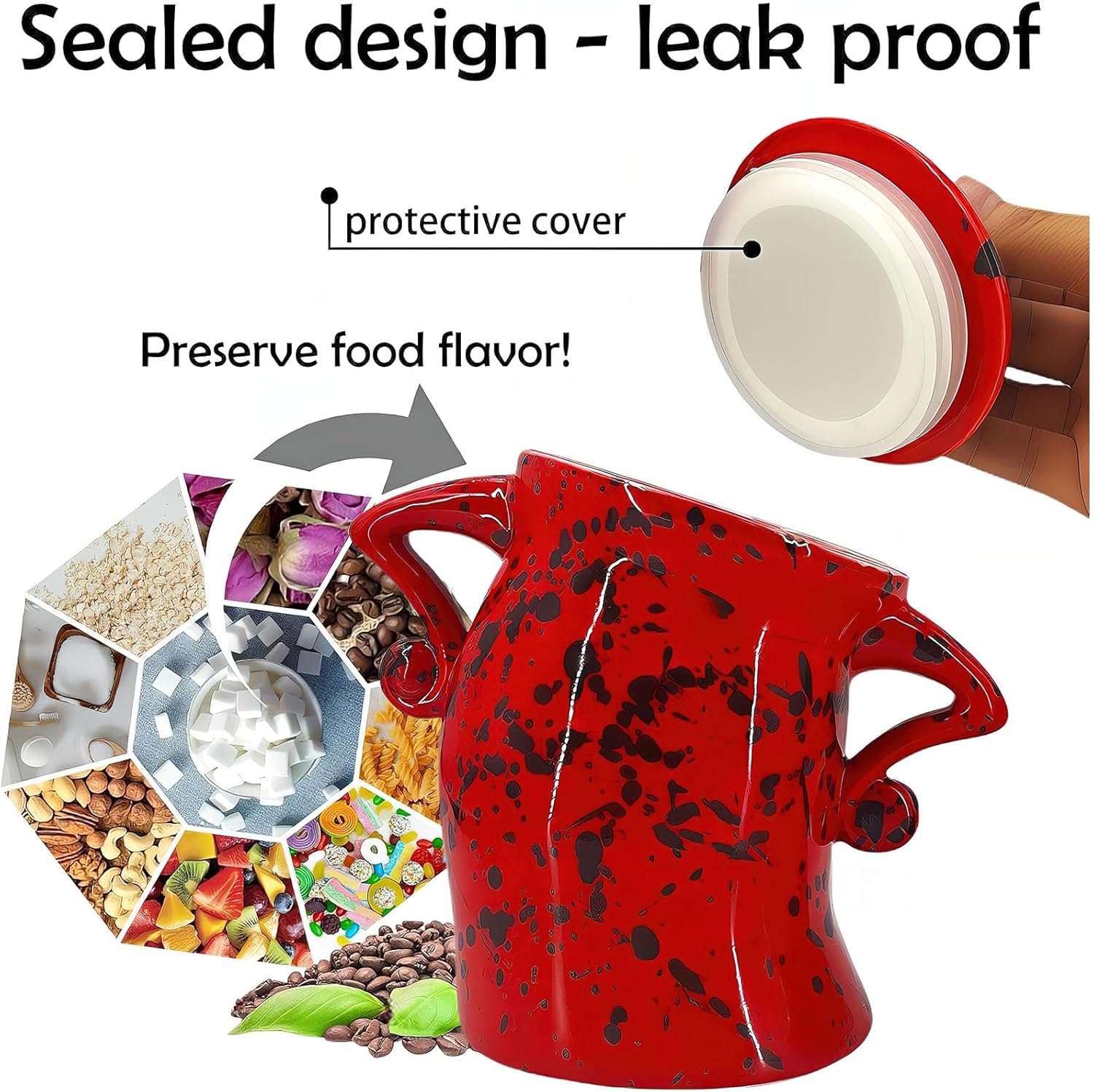 Canister with Attitude, Creative Forked Waist Jars with Lids, Retro Spotted Cup Food Cans Kitchen Storage Jars Airtight Canister for Tea Pot Desktop Cup Ornament(Red)