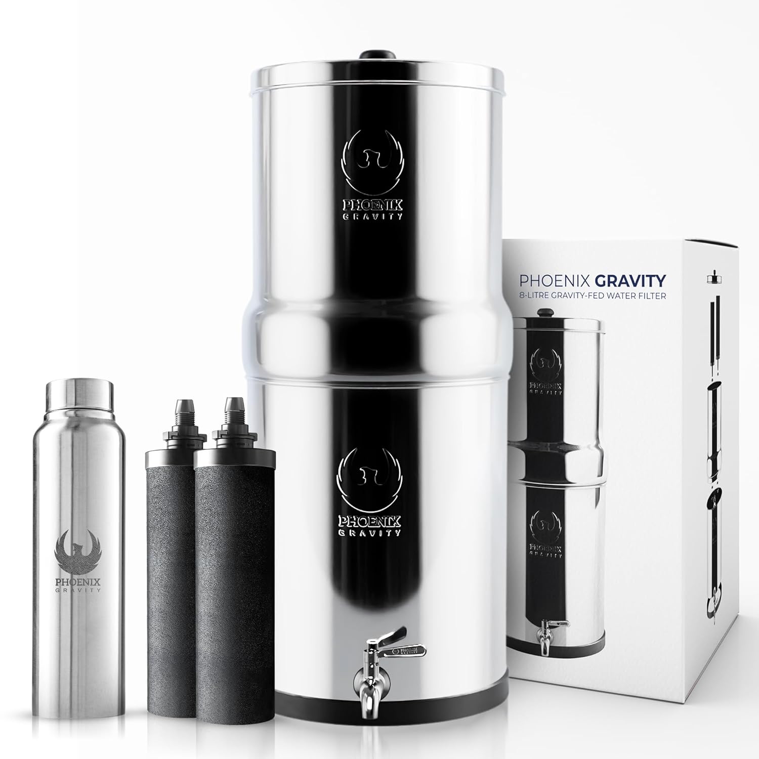- ๐๐ฅ๐ฅ-๐๐ง-๐๐ง๐ ๐๐จ๐ฅ๐ฎ๐ญ๐ข๐จ๐ง โ The Phoenix Water Filter System includes a stainless steel tank, 2 Smart Carbon (Black) filter elements, a stainless steel spigot, and all required parts. Whether you need a countertop water filter system for your kitchen or a portable water filter for on-the-go use, itโs ready right out of the box.