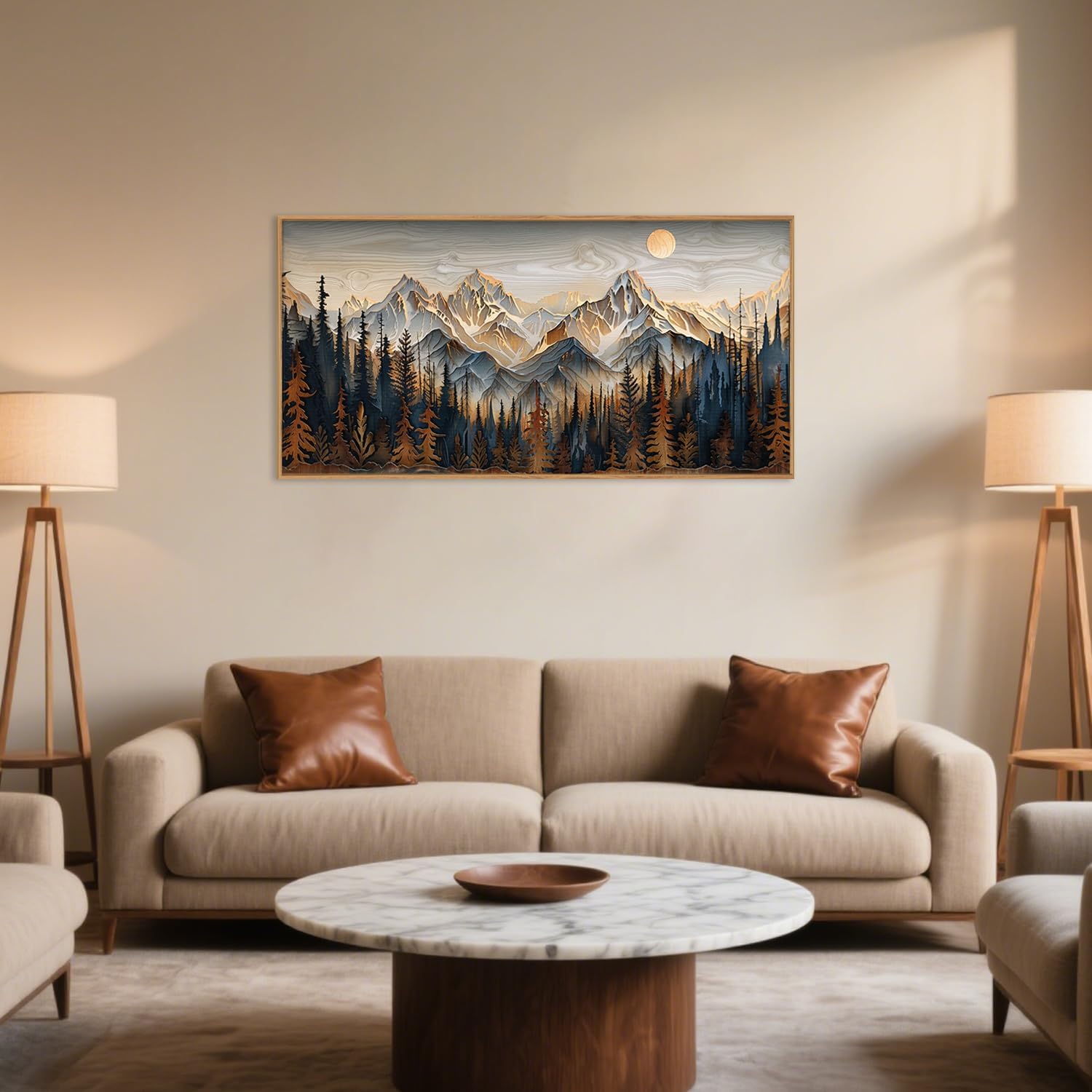 - 【Vintage Scenery Framed Canvas Wall Art】This wood mountain decor art set is a popular choice for enhancing the aesthetic appeal of various interior settings. The wall decor set consists of colorful mountain, jungle, and sunrise harmonizing together to create a balanced and unified visual effect. Whether you choose to place it in your living room, bedroom or office, its non-figurative style and neutral colors create a serene and visually pleasing environment.