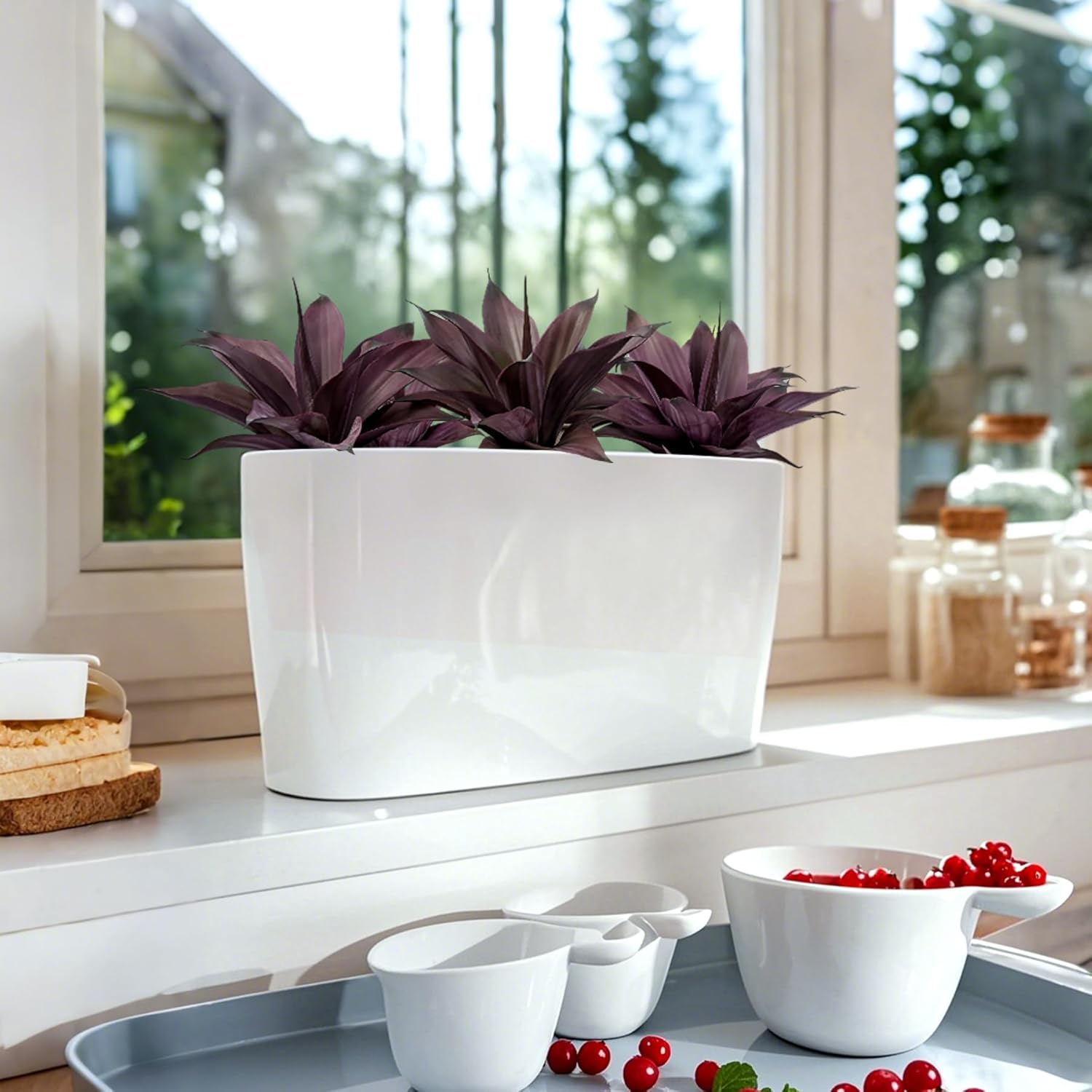 - [About The Large Fake Plants Color]: natural Purple, replica of the real agave color, delicate and durable, outdoor sun protection.Low Maintenance Unlike real plants, these artificial agave planters require no watering, pruning, or fertilizing. faux succulent outdoor plant enjoy the beauty of greenery without the hassle of maintenance.