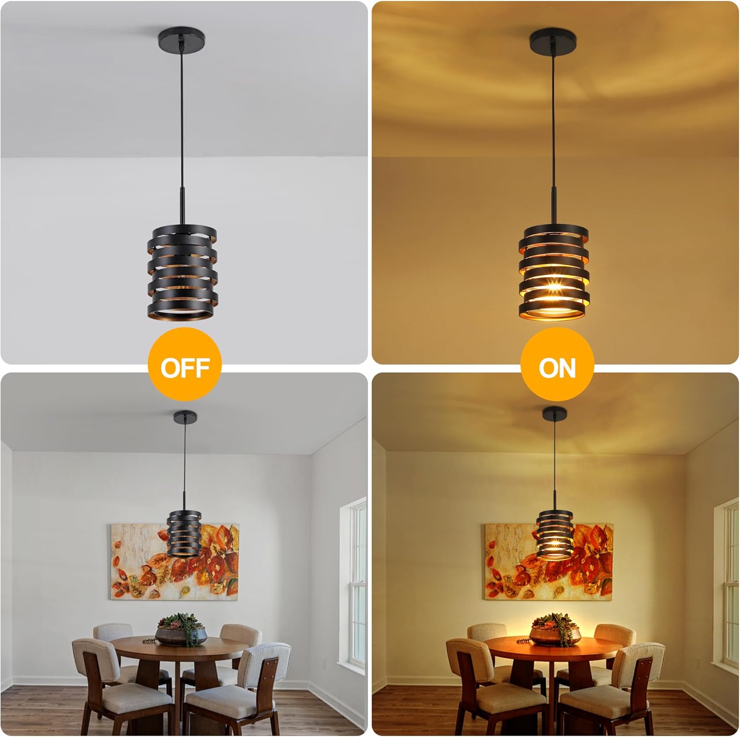 - Size & Widely Applications -- Diameter: 6.3in, Height: 13~72in. Canopy Diameter: 4.7 in. Comes with 59-inch long wires, so you can flexibly adjust the hanging height of the small round pendant light. Sloped ceiling adaptable.