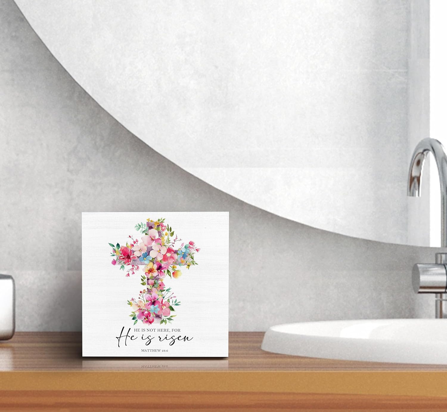 SRADMO He Is Risen Sign, Floral Cross Easter Christian Wood Box Sign Desk Decor, Christian Easter Decorations, Easter Theme Wooden Block Box Decoration for Home Office Shelf Table Decor