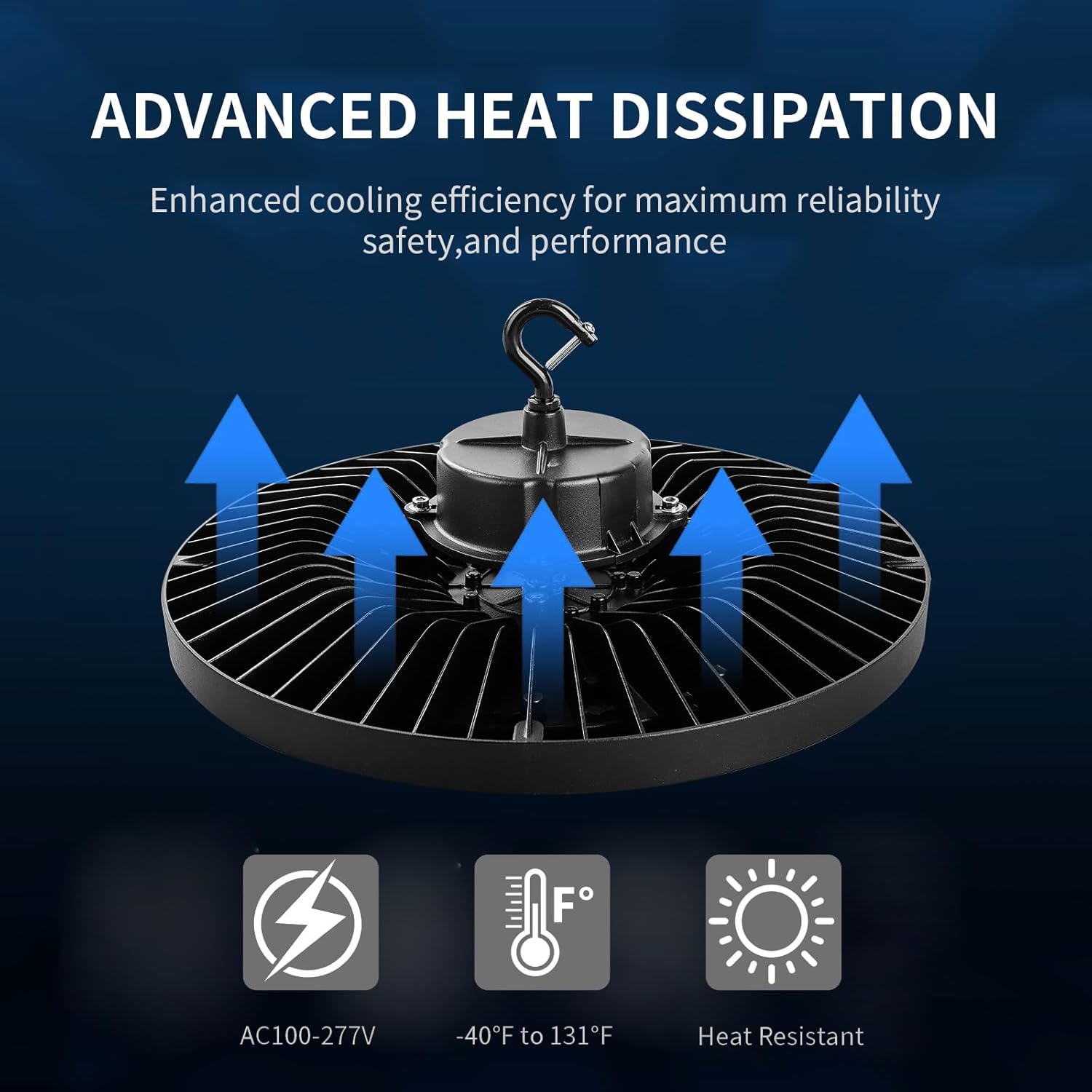 - Application: This UFO LED high bay light 240W uses high lumen led chip,with 24000lm output luminous and high colour rendering, this shop lights makes ample illumination for expansive areas, significantly enhancing visibility and safety. Widely used for workshops, warehouses, garages, basements, gyms, supermarkets, gymnasiums, logistics companies, restaurants and etc.