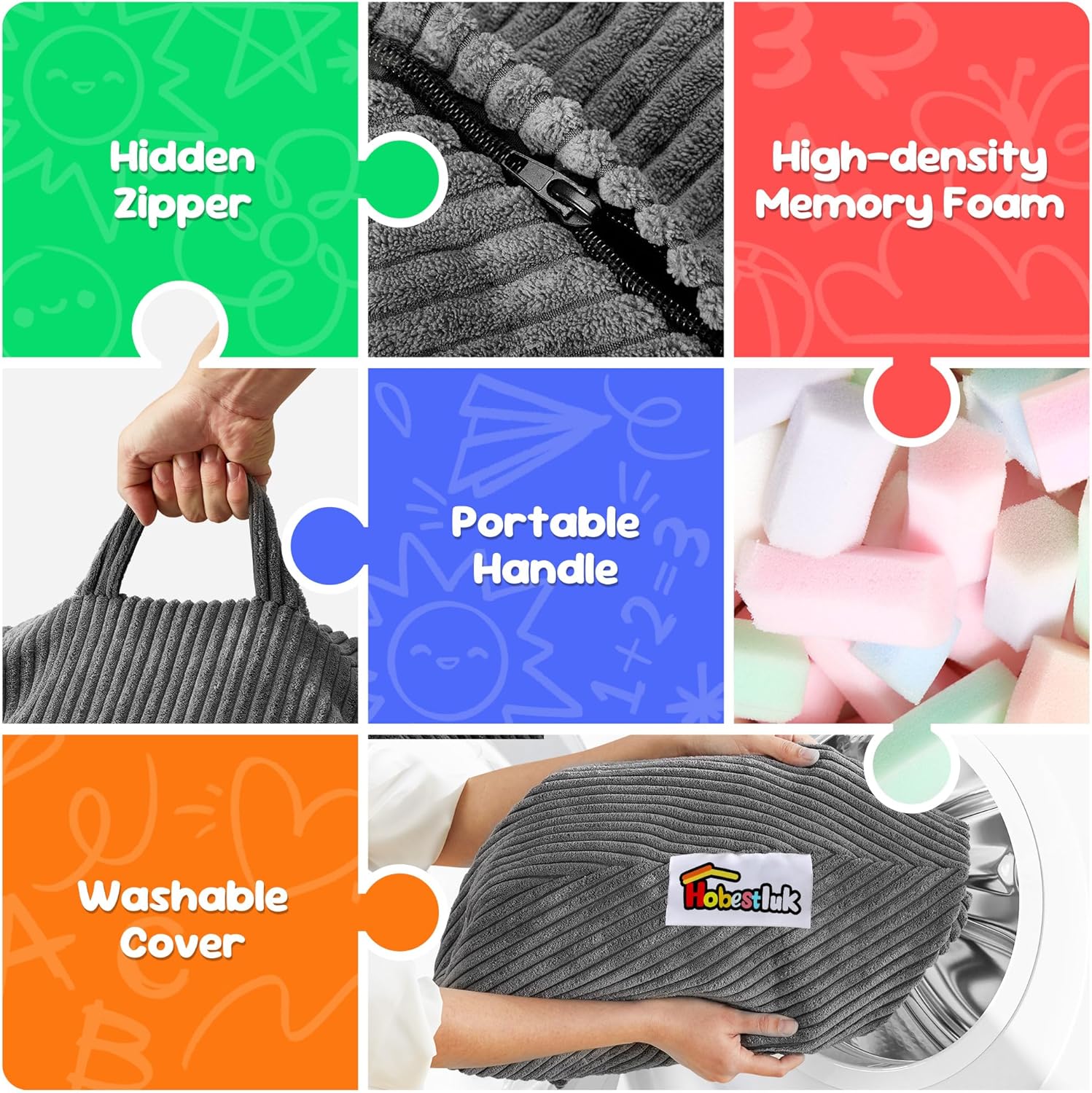 - Creative Design: Hobestluk bean bag chairs look like a tear drop with a wide base that narrows towards the top. There are six colors for you to choose in this design. Plus, our bean bag is made of comfy textured corduroy fabric and high-density memoy foam, which feels like you're sinking into a cloud.