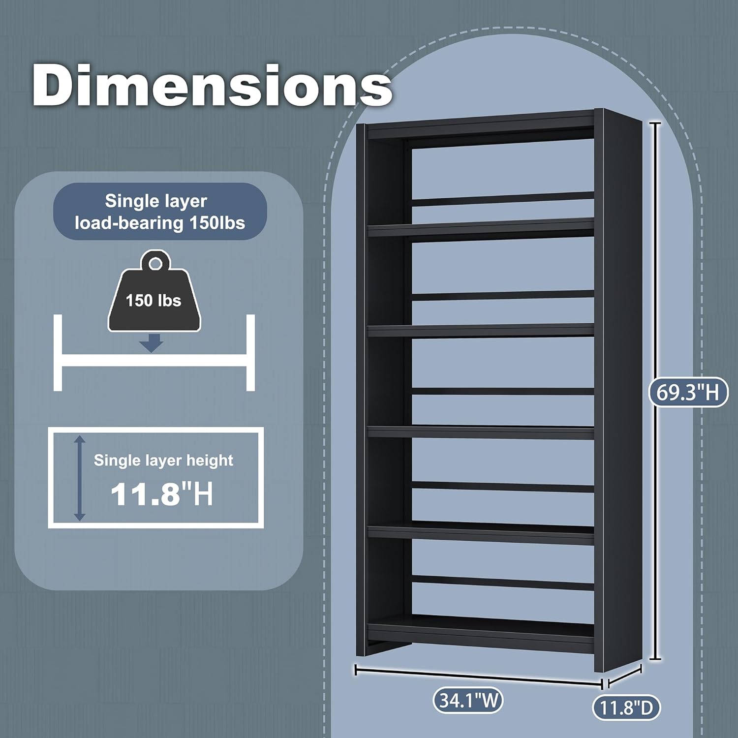 - Product Dimensions : 11.8"D x 34.1"W x 69.3"H