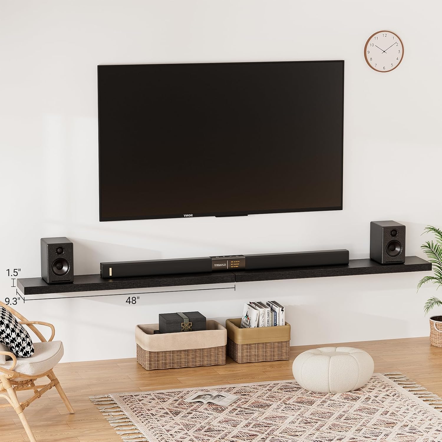 - 【Longer Design】Our pretty black floating shelves are 48"W x 9.3"D x 1.5"H.Our wall shelf is longer than traditional designs and can hold more items.The black shelves for wall optimize wall space,helping organize essentials without taking up floor space in your home.