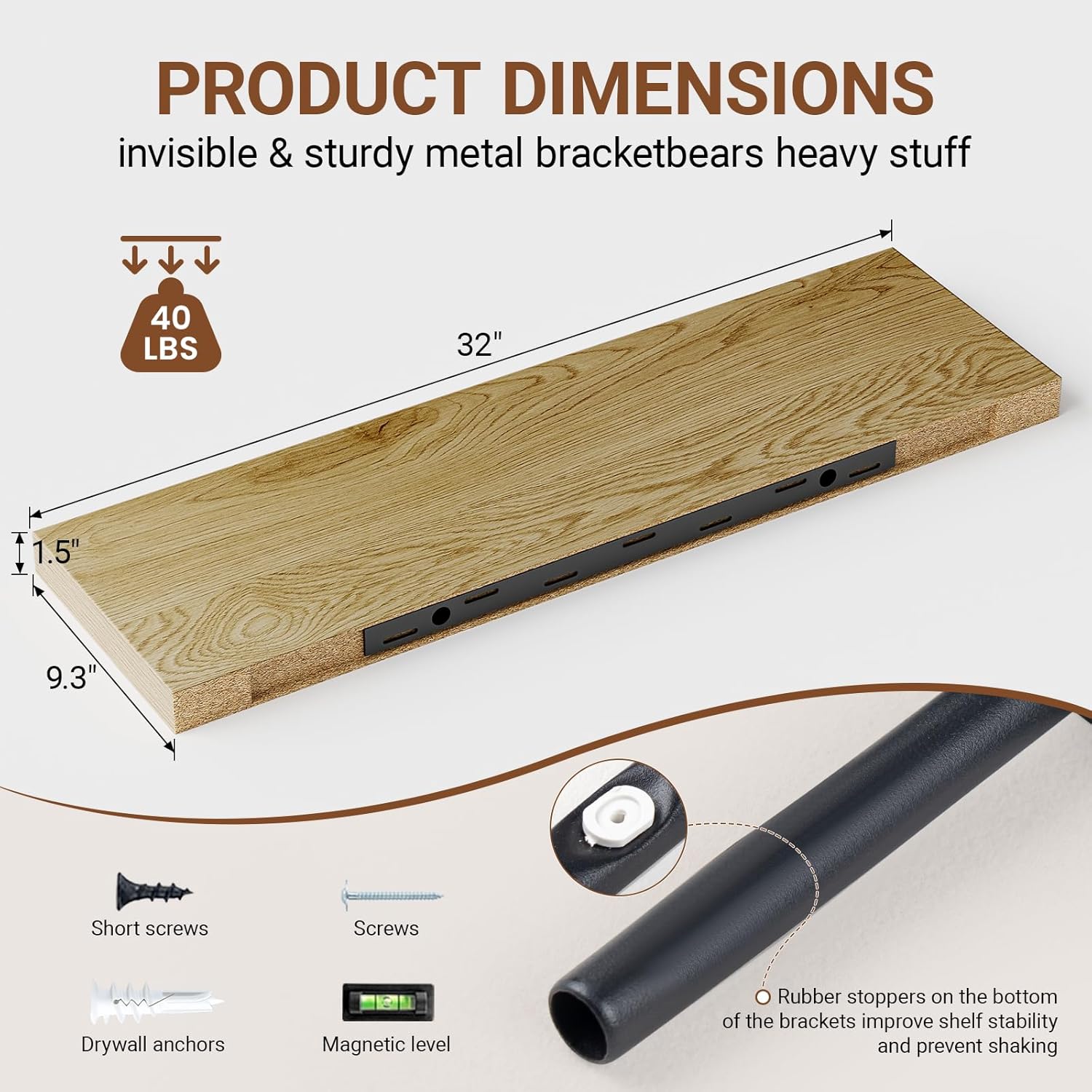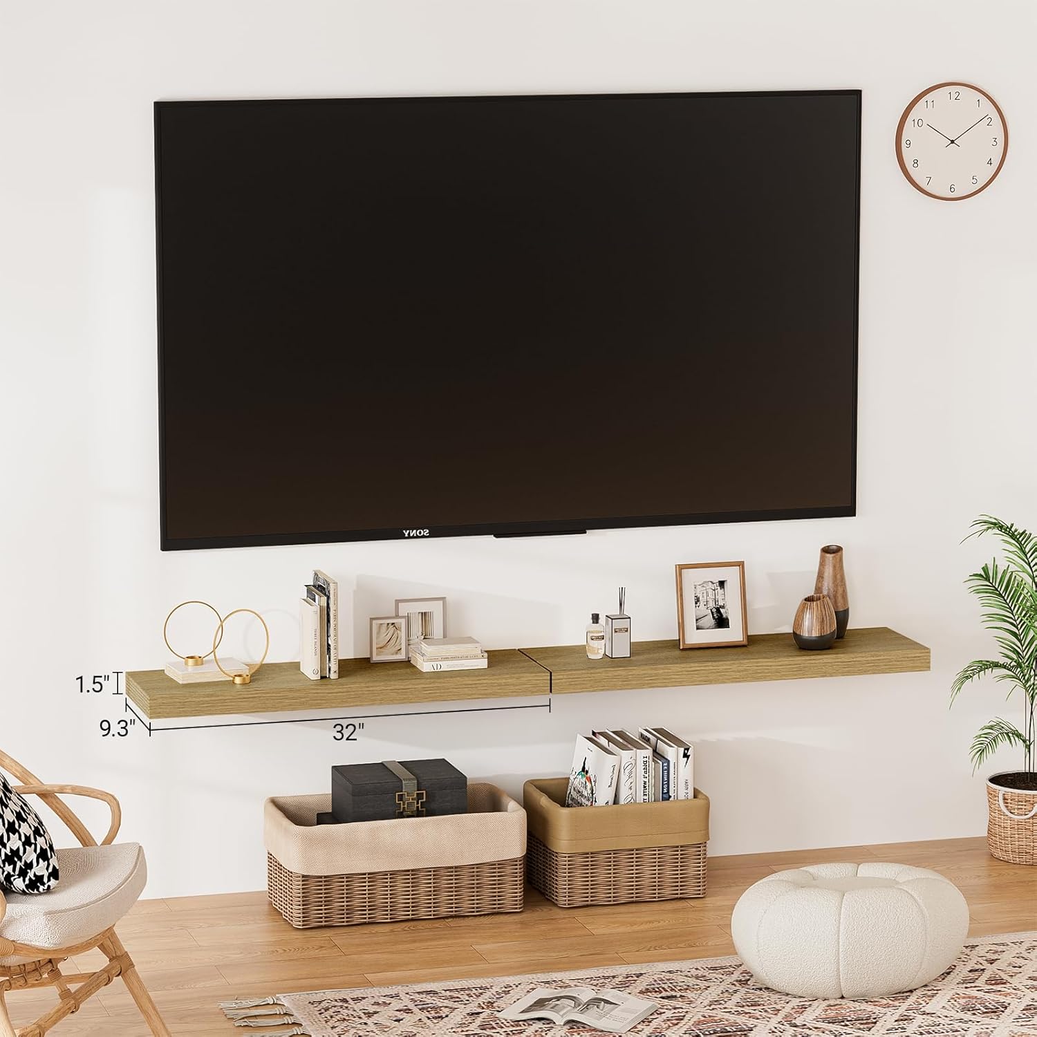 - 【Longer Design】Our pretty 32 inch wall shelves are 32"W x 9.3"D x 1.5"H.Our 32 floating shelves is longer than traditional designs and can hold more items.The white oak floating shelves optimize wall space,helping organize essentials without taking up floor space in your home.