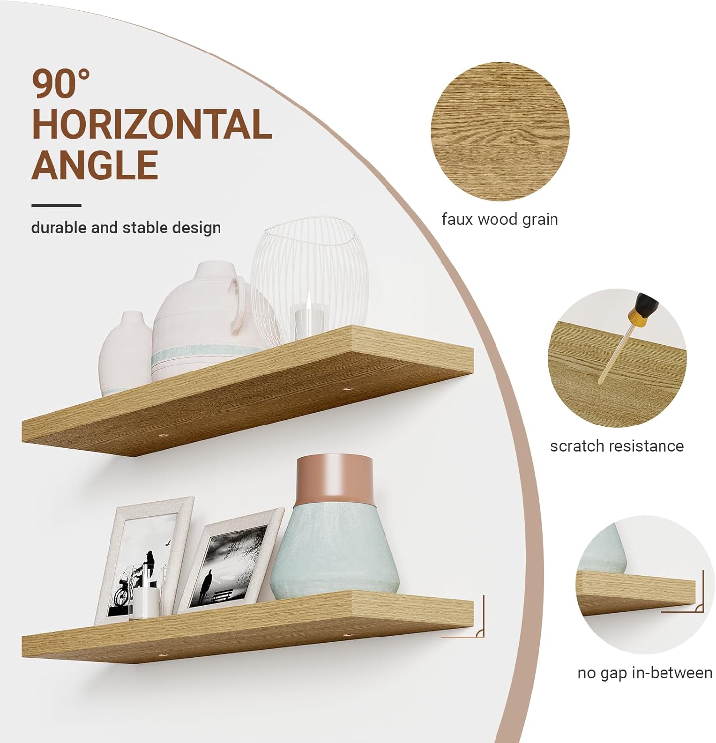 Heimlove Floating Shelves for Wall 36 Inches Long,9.3" Deep Oak Floating Shelf Set of 2,Wall Mounted Shelves for Bathroom Bedroom Living Room Kitchen Office,Shelf for Books Storage,Home Decor