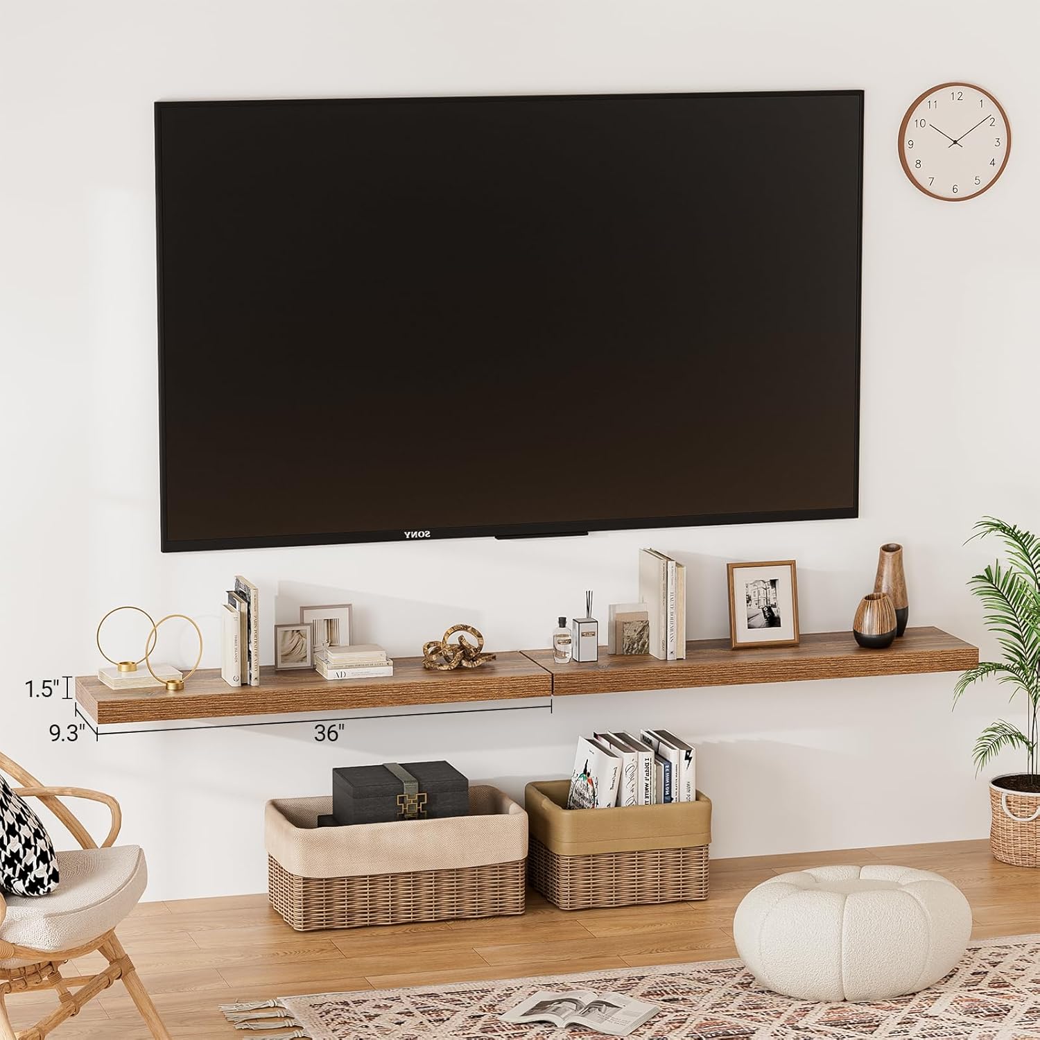 - 【Modern Rustic Look】Our 36 inch floating shelves for wall are made from durable engineered wood,which blends well with modern and rustic farmhouse wall decor alike.The walnut floating shelves 36 inch is available in colors & sizes,perfect for storing books,plants,collectibles,etc..