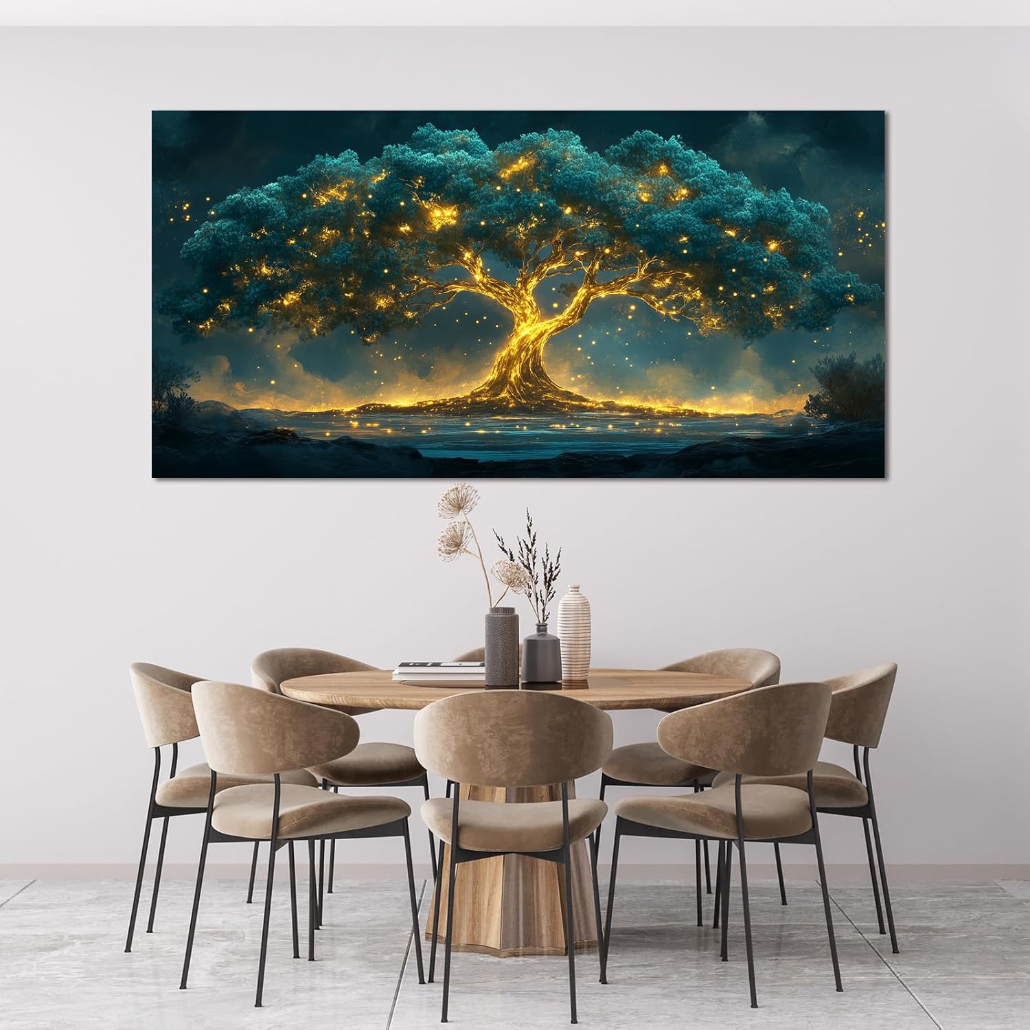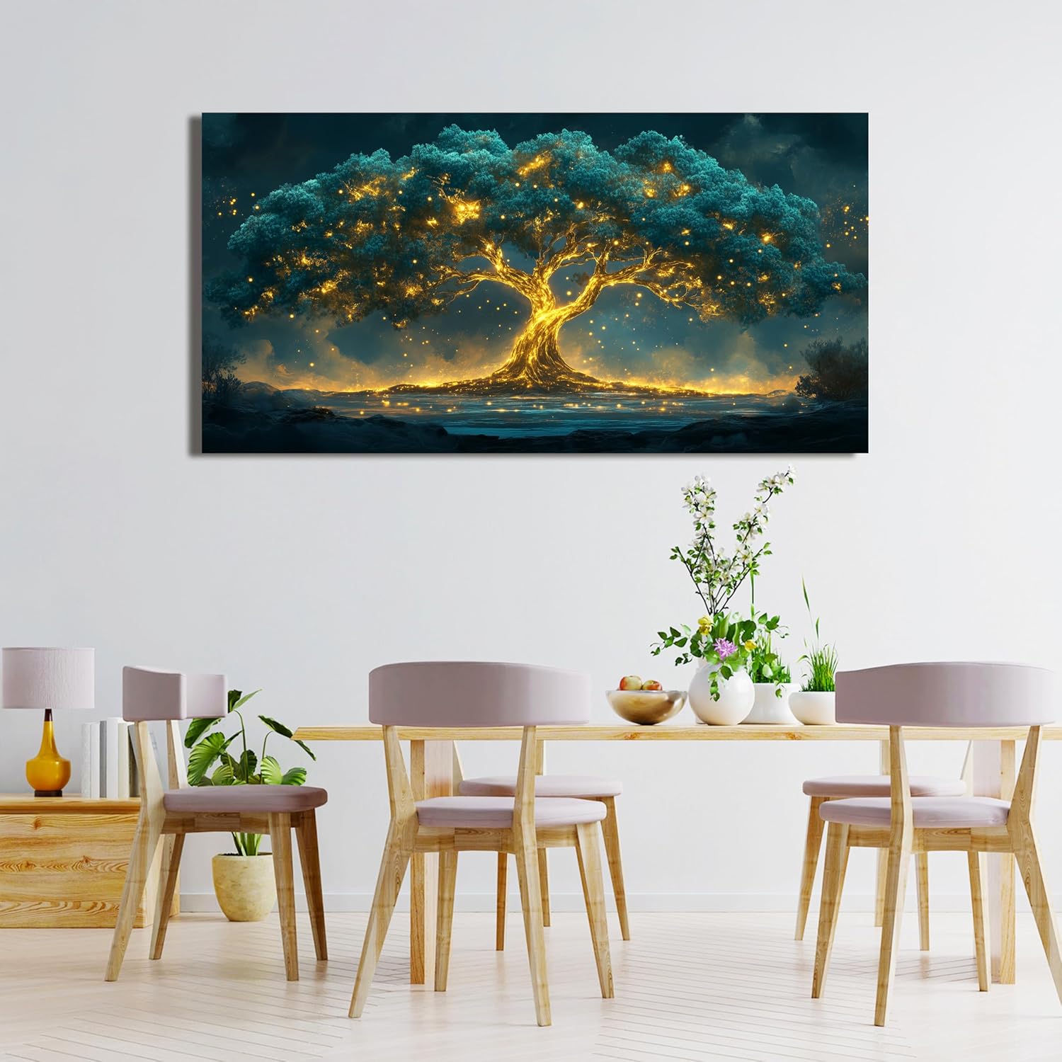 Canvas Wall Art Decor Artwork for Walls Green Wall Art Decor Tree of Life Wall Art for Living Room Wall Art Paintings Prints Gold Tree Wall Decor Art Art Work for Room Home Office Wall Decor 24" X 48"