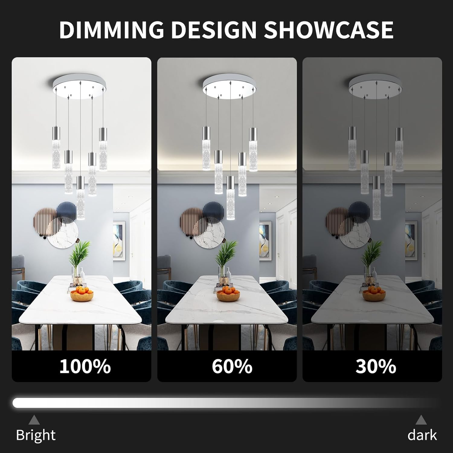 - 【Sleek & Modern Design】Elevate your space with this modern pendant light, featuring electro-chrome steel accents and cylindrical crystal bubble detailing. Designed to infuse luxury and artistry into your home, it transforms your kitchen island into a sophisticated focal point.