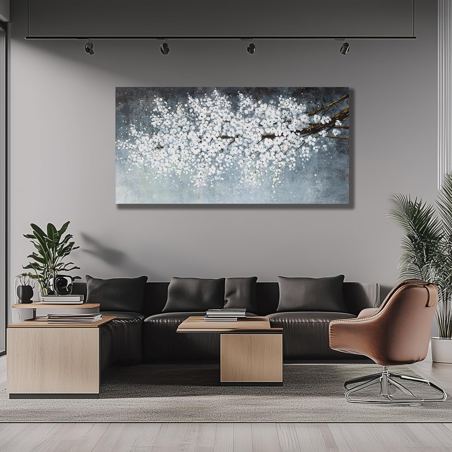 Belmrxne Flower Wall Decor White and Black Wall Art Home Decor Aesthetic Unique Canvas Painting for Living Room Bedroom Dining Room Office Home Decor 24x48 inch