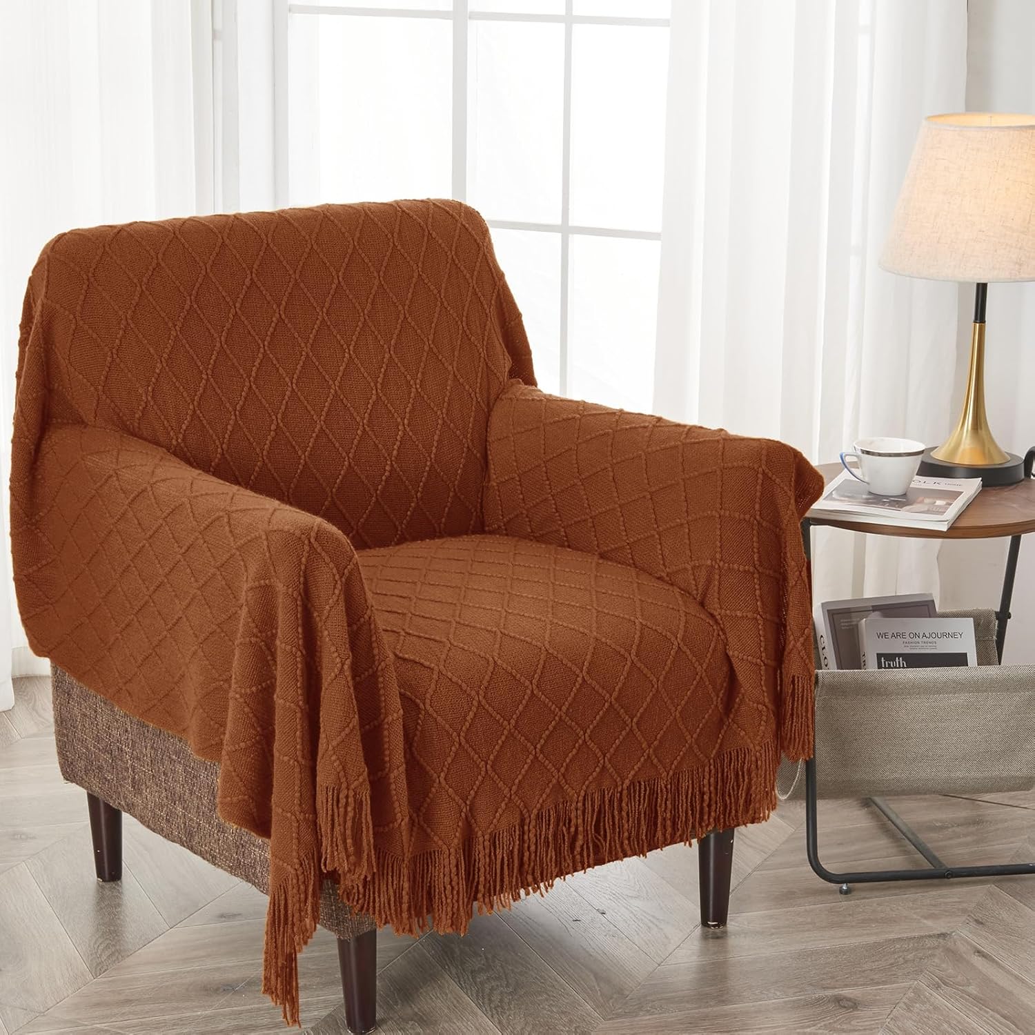 - 【FANTASTICAL COMBINATION】: Decorative blankets and throws ,nice raised diamond shape knit design and well-arranged fringes. It's couldn't be better to decorate your home for Christmas, Thanksgiving, and other holidays. A good cozy blanket is a combination of the right price, satisfactory adaptability, and lovely design.