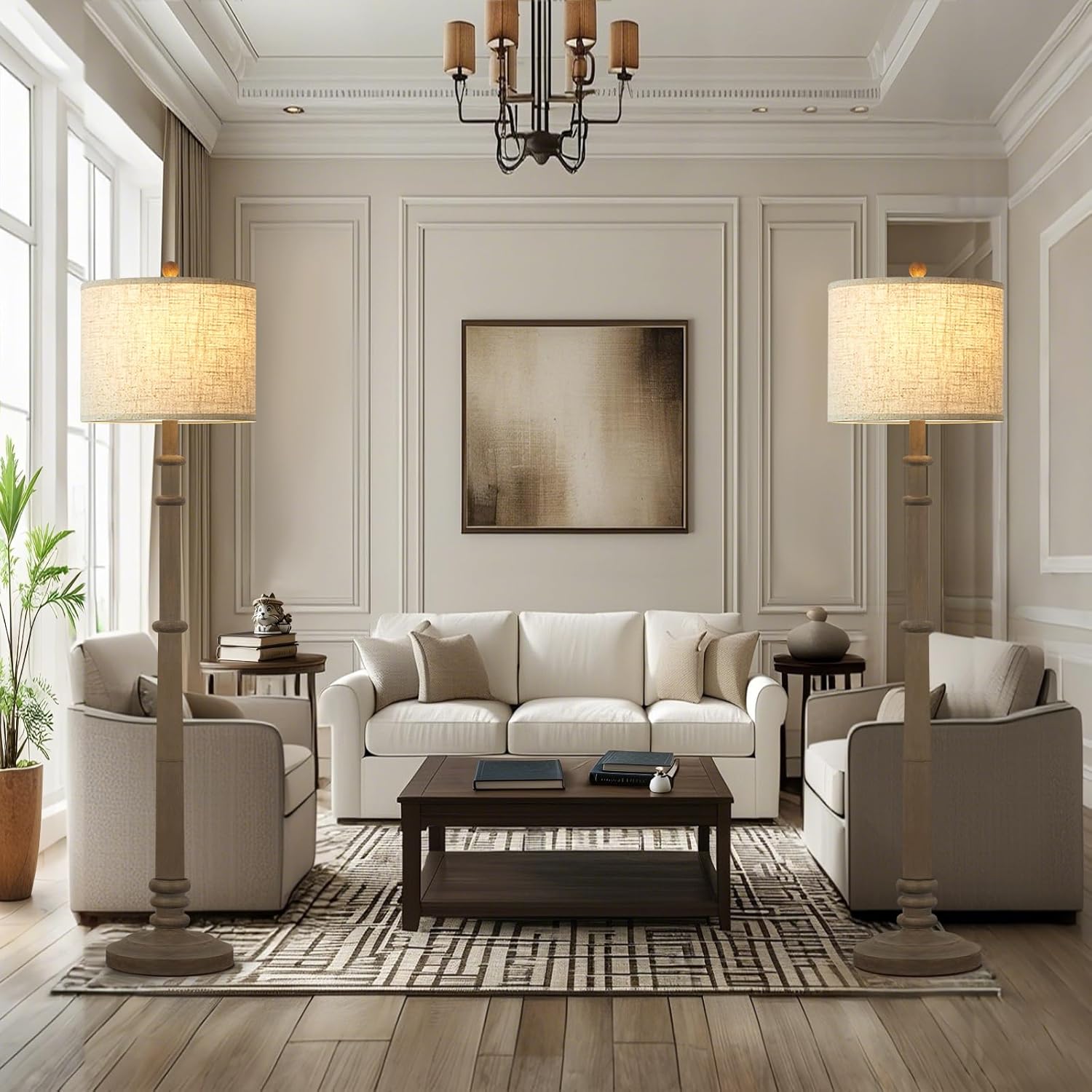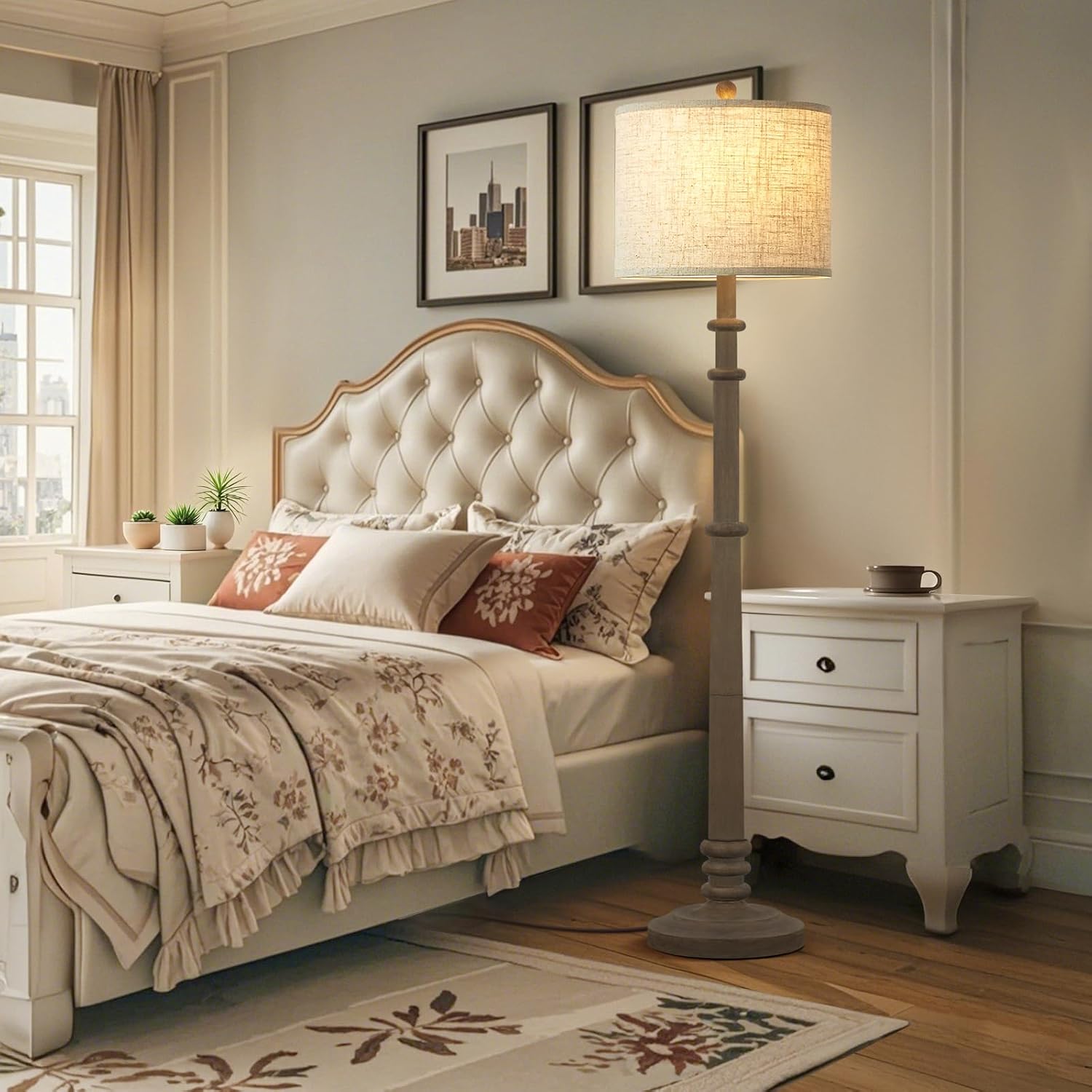 - ๐๐๐ซ๐ฌ๐๐ญ๐ข๐ฅ๐ ๐๐๐ฌ๐ข๐ง ๐ ๐ฅ๐จ๐จ๐ซ ๐๐๐ฆ๐ฉ - Discover versatility with our farmhouse floor lamp, expertly molded from resin for lasting beauty and reliability. Its classic design, complemented by a crisp white fabric drum shade, seamlessly integrates into any decor scheme from modern to traditional. Ideal for creating a cozy atmosphere in bedrooms, living areas, or reading corners. Simple assembly ensures hassle-free setup