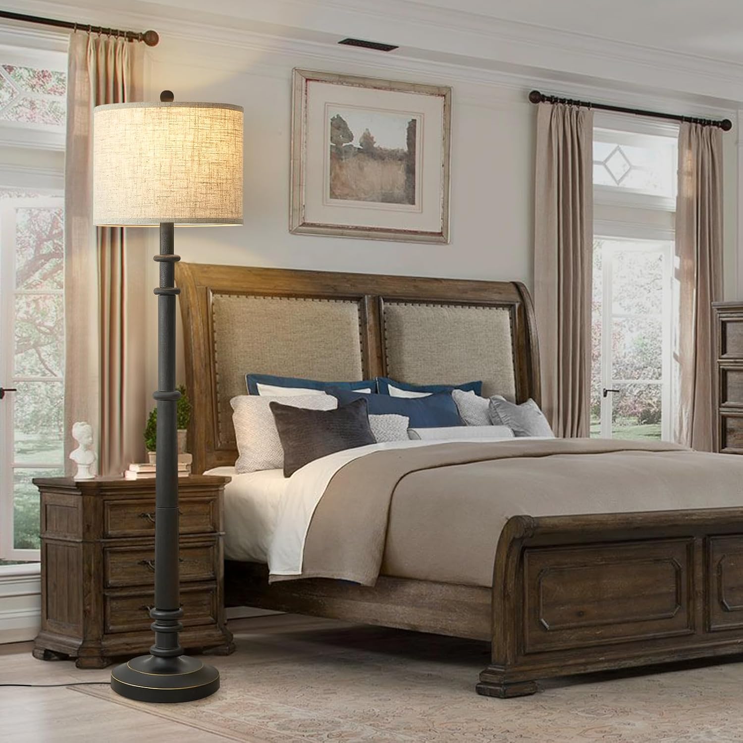 - ๐๐๐ซ๐ฌ๐๐ญ๐ข๐ฅ๐ ๐๐๐ฌ๐ข๐ง ๐ ๐ฅ๐จ๐จ๐ซ ๐๐๐ฆ๐ฉ - Discover versatility with our farmhouse floor lamp, expertly molded from resin for lasting beauty and reliability. Its classic design, complemented by a crisp white fabric drum shade, seamlessly integrates into any decor scheme from modern to traditional. Ideal for creating a cozy atmosphere in bedrooms, living areas, or reading corners. Simple assembly ensures hassle-free setup