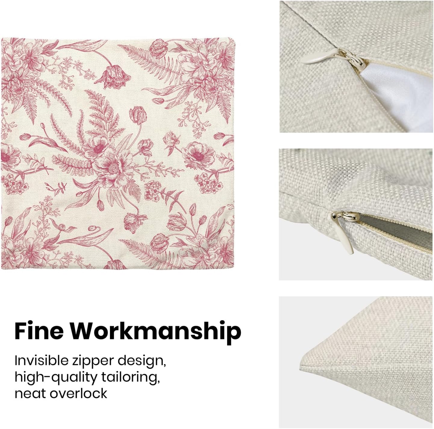 - 【Spring Pillow Covers】 Our Chinoiserie floral throw pillow covers 16x16 inch are made of excellent breathable polyester cotton fabric. The pink and White floral decorative pillow covers is sturdy, soft and skin-friendly. The plant outdoor pillow covers adopt exquisite edging technology and four sides of our floral pillow covers are sewn firmly, which is not easy to open the line.