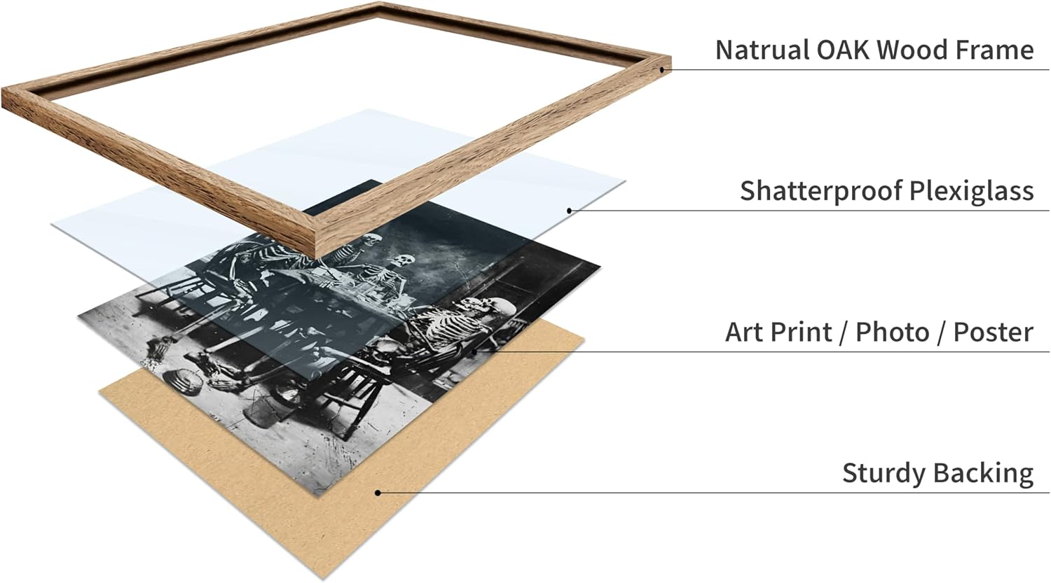 Poster Master Vintage Photograph Poster - Retro Daguerreotype Print - Gift for Artist, Friend - Skeletons Smoking at Table, Dinner Party, Goth - Wall Decor for Home, Dorm, 11x14 Beige Framed